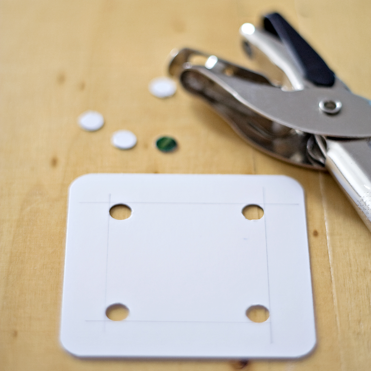 Wieder ist klar im Vorteil, wer das dementsprechende Werkzeug hat. Mit einem normalen Locher funktioniert das auch, ist allerdings ein wenig mühsamer und nicht ganz so präzise – ich war froh, dass ich meinen kleine Lochzange da hatte…