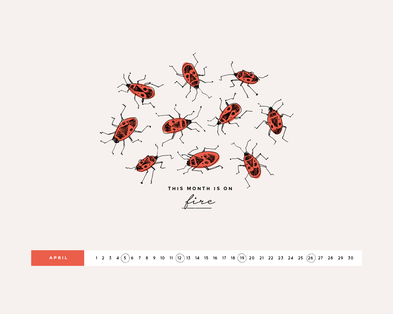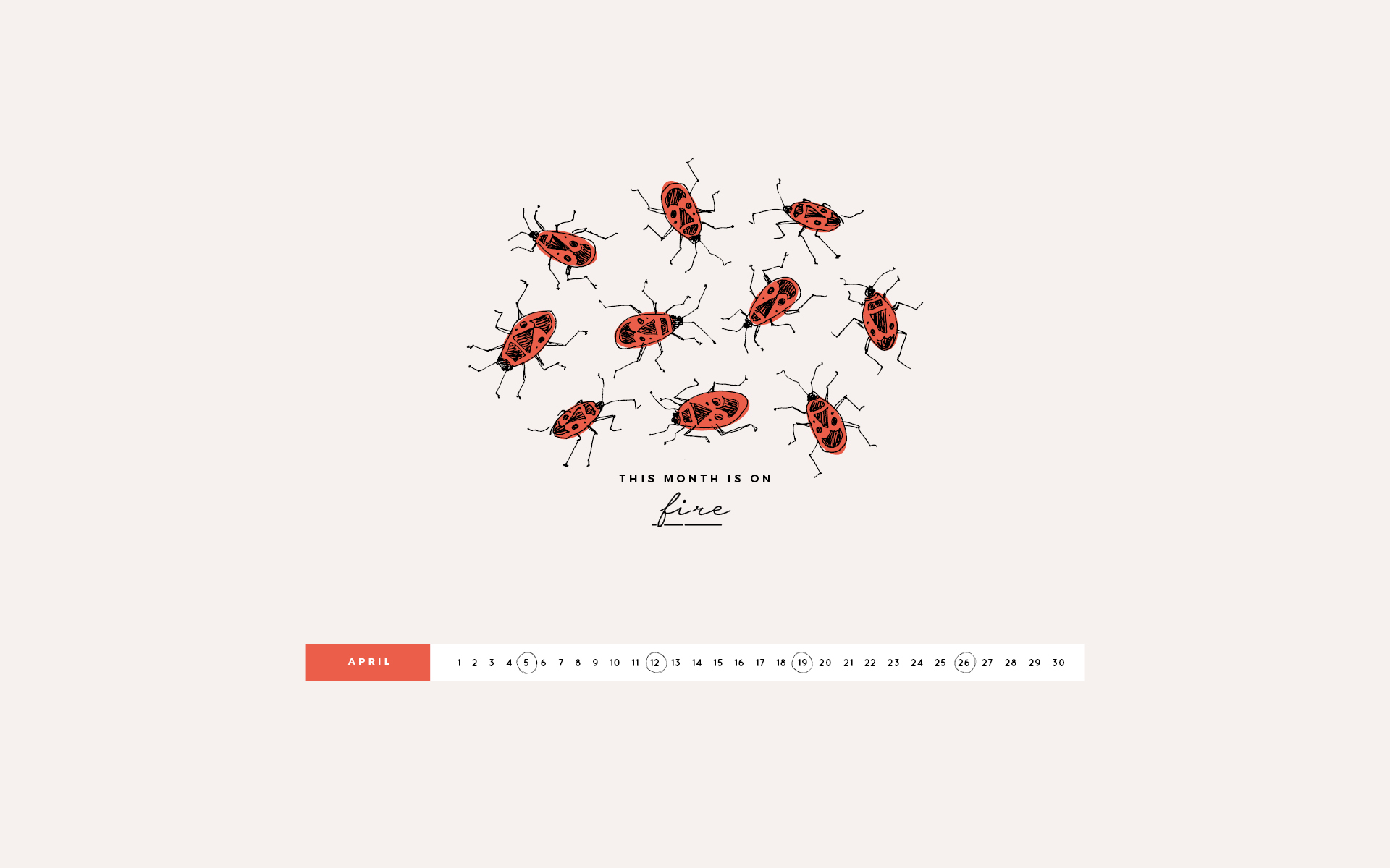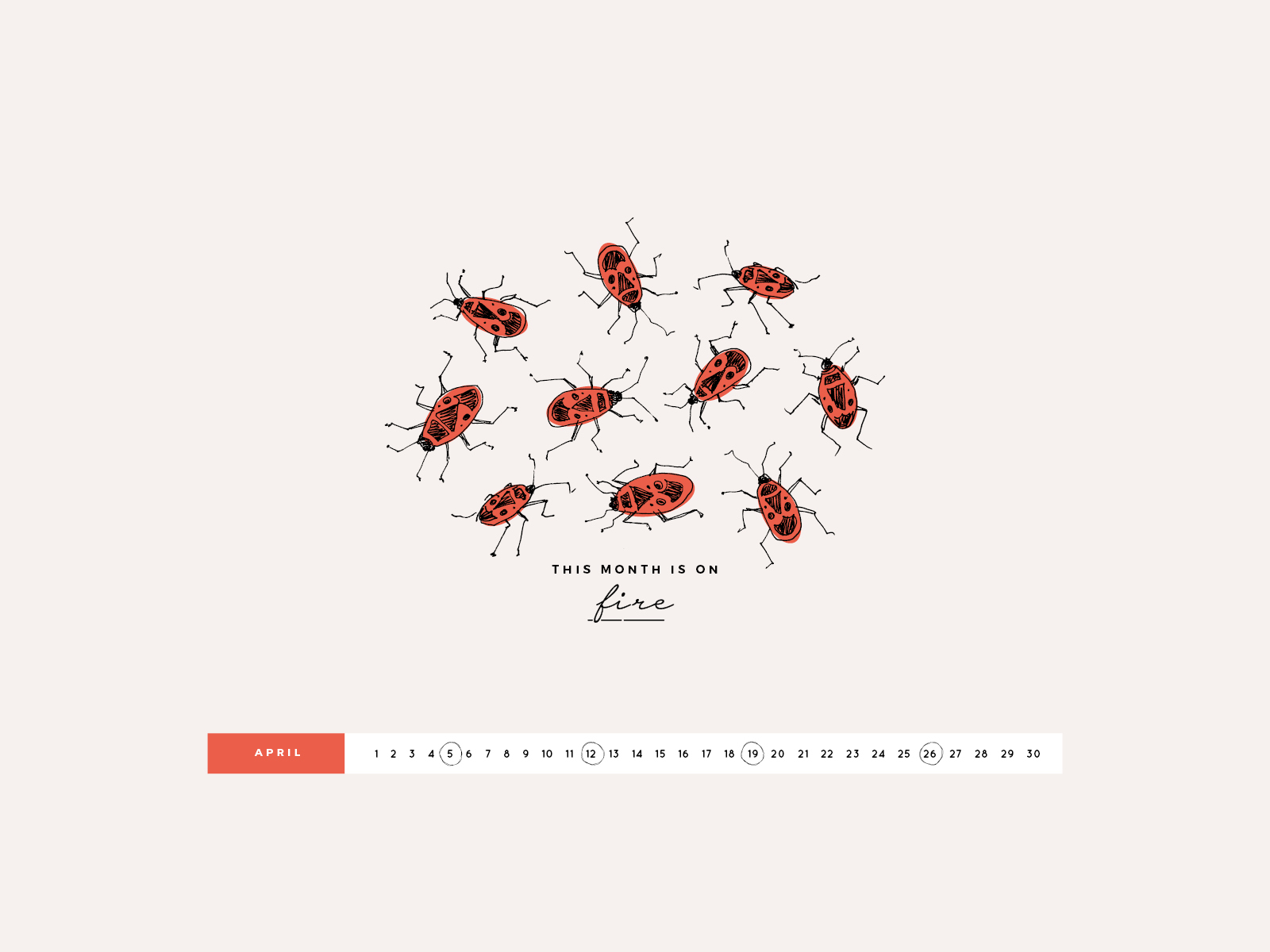 Die Feuerwanzen sind wieder da! Bei uns im Hof wimmelt es gerade vor lauter kleinen rot-schwarzen Tierchen und ich freue mich wie jedes Jahr superdoll, dass sie sich wieder bei uns rumtummeln. Daher gibt’s ein feuerwanziges April-Hintergrundbild für euch (und mich), um den Frühlingsanfang und die hoffentlich ein bisschen wärmeren Tage zu feiern.