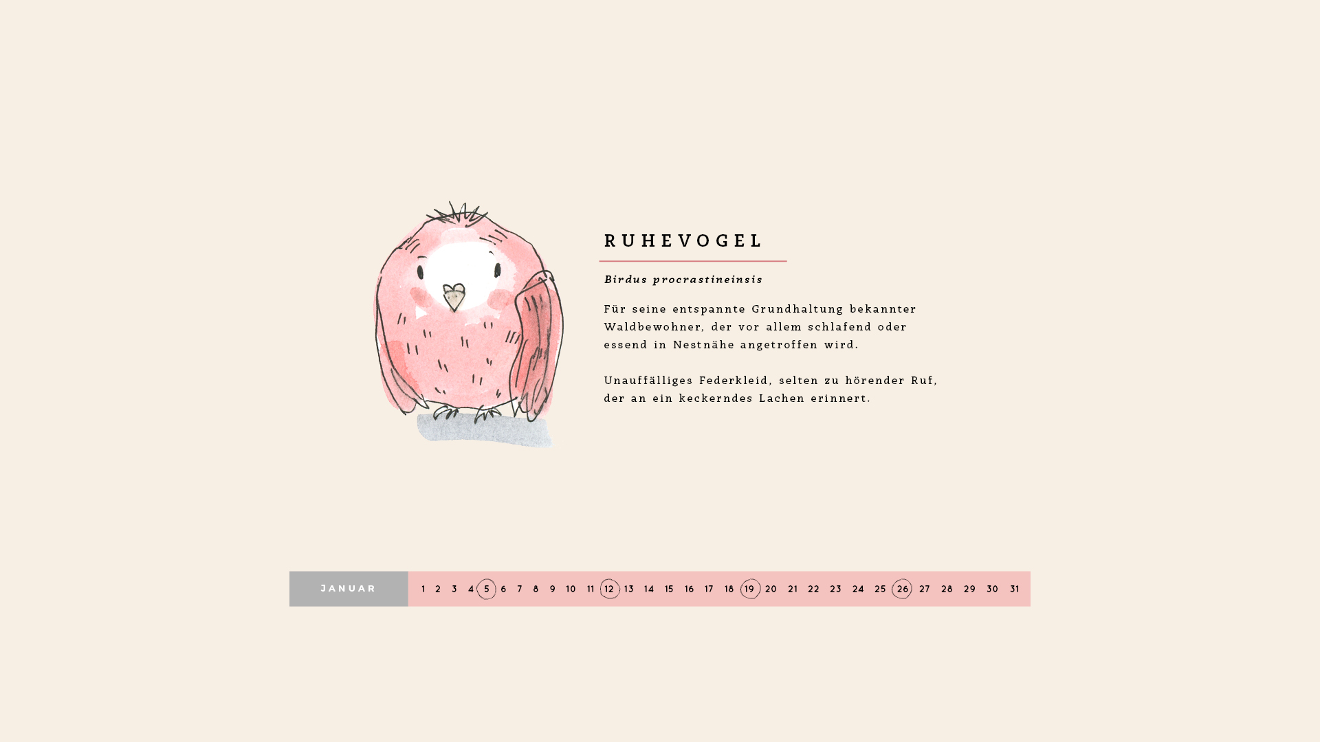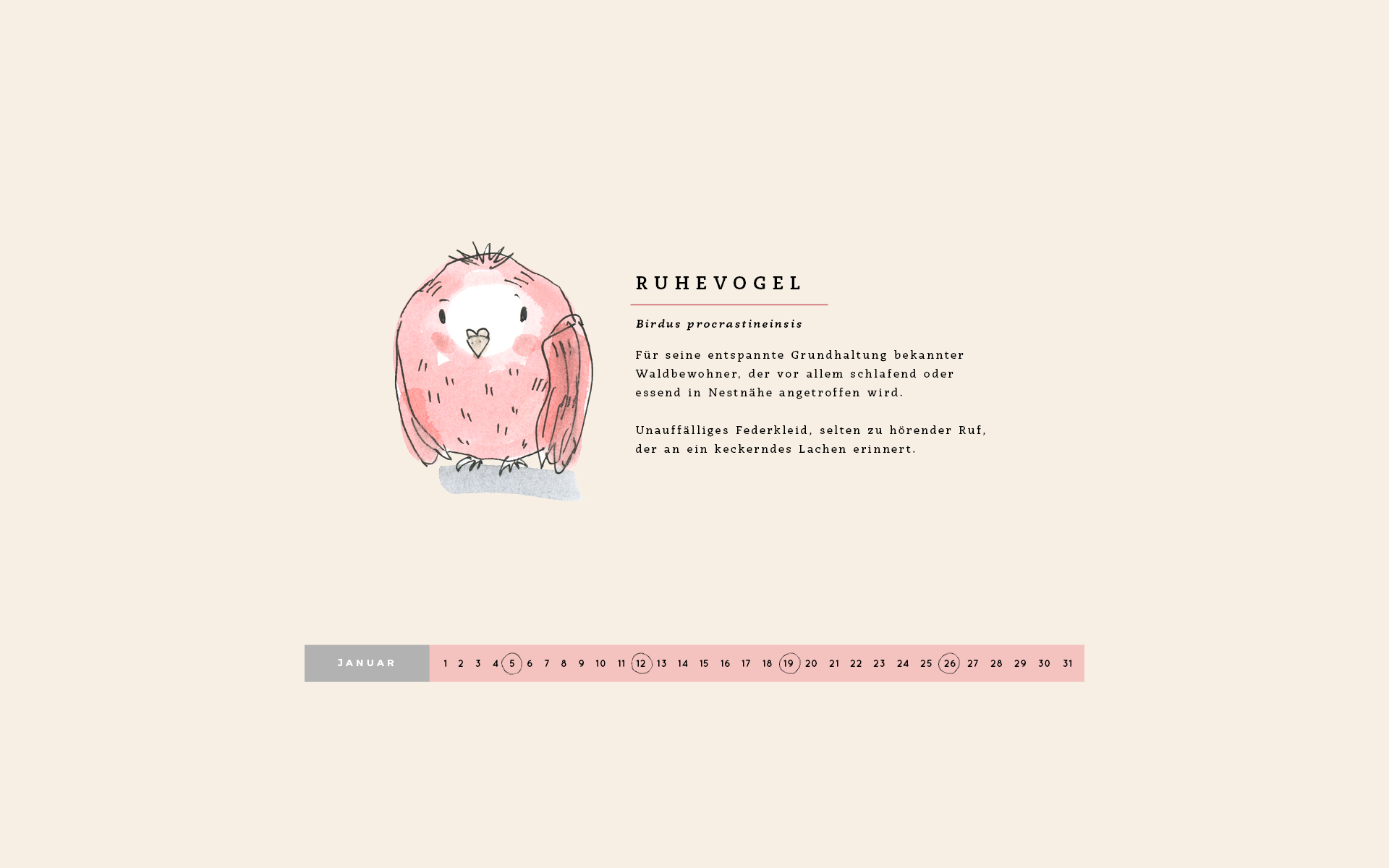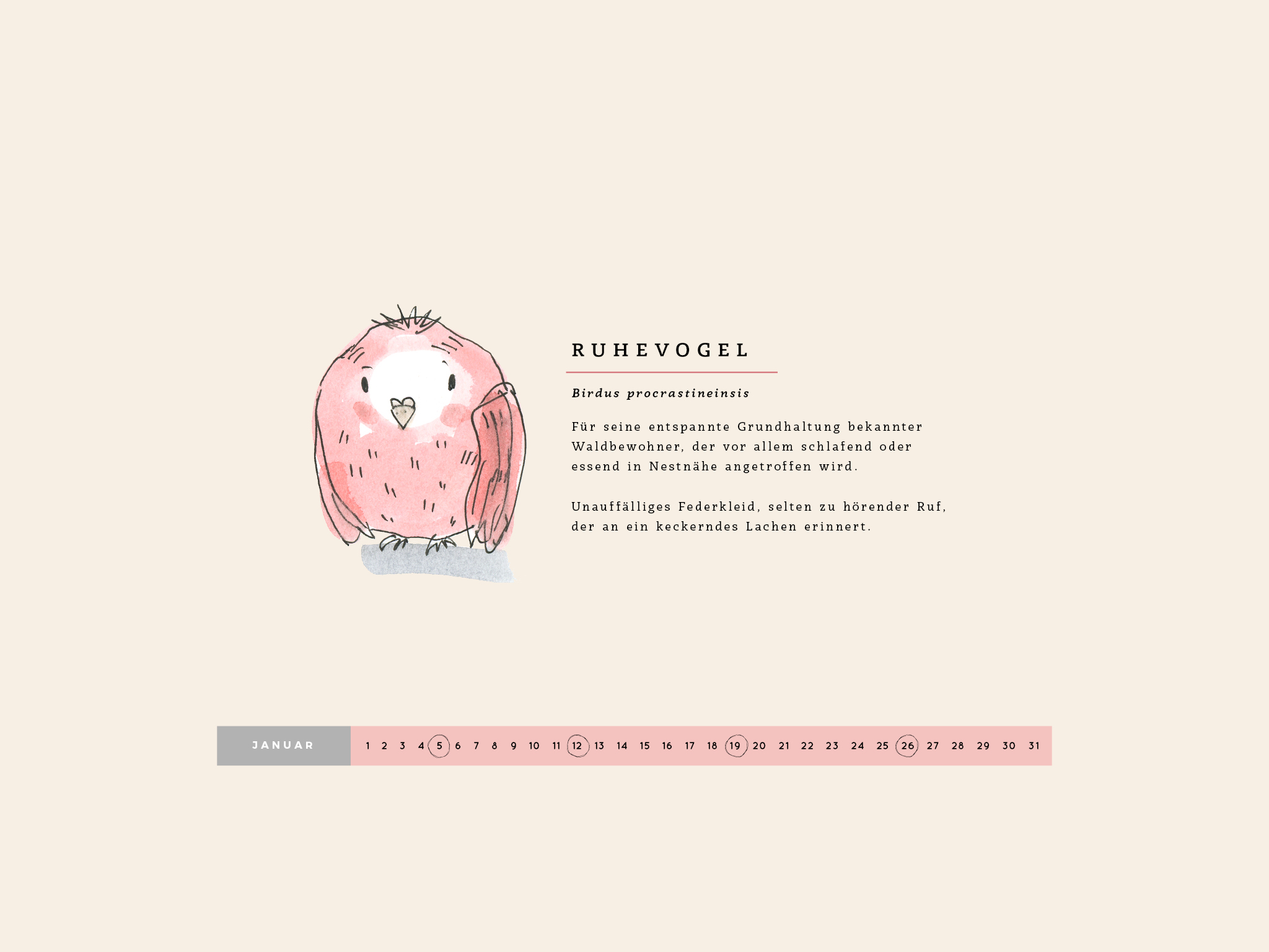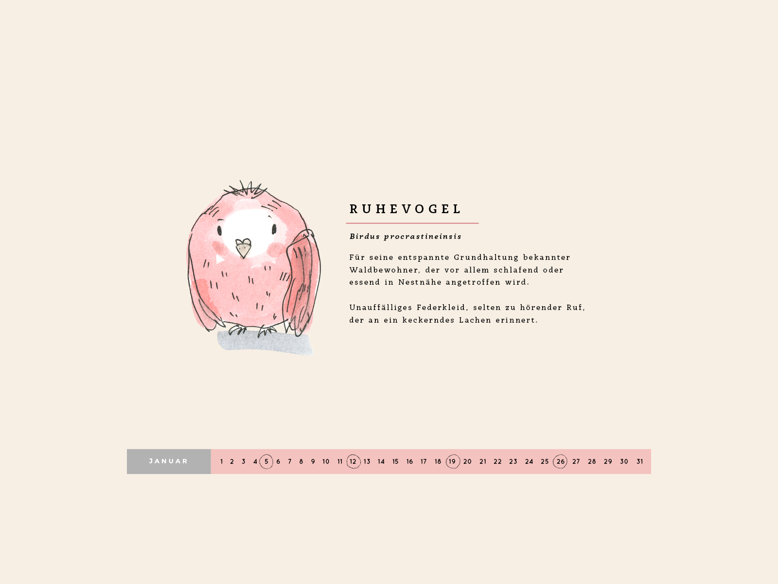 Nix planen, nix vornehmen, nix erledigen. Einfach nur sein. Wie der kleine „Ruhevogel“, der im Januar ganz offiziell mein Krafttier sein wird. :) Lust mitzumachen (bzw. mitzu-nichtmachen)? Dann ist der neue Hintergrund perfekt für dich. Das haben wir uns verdient!