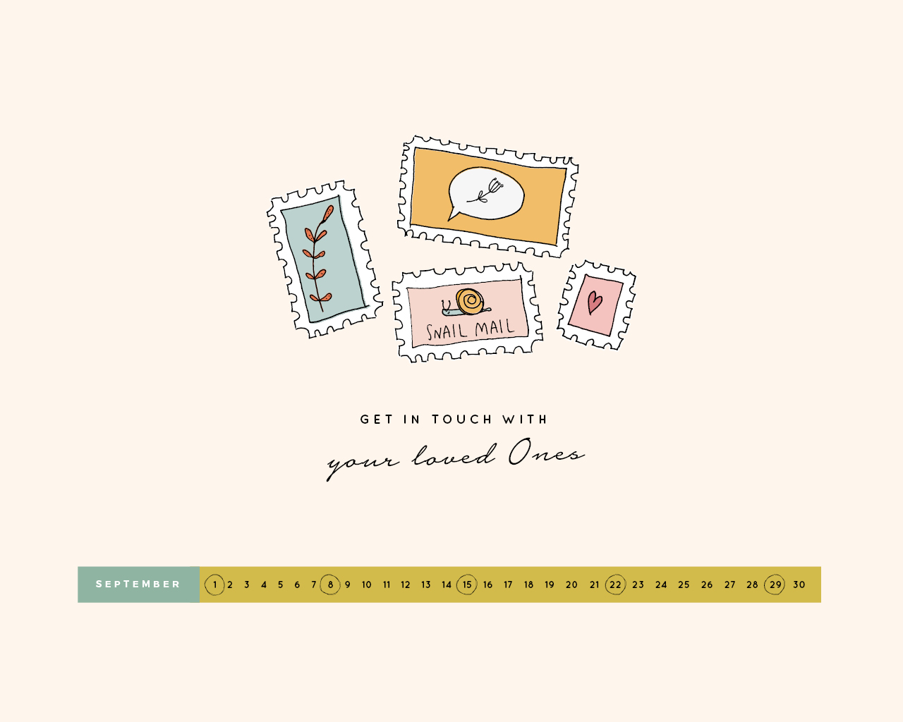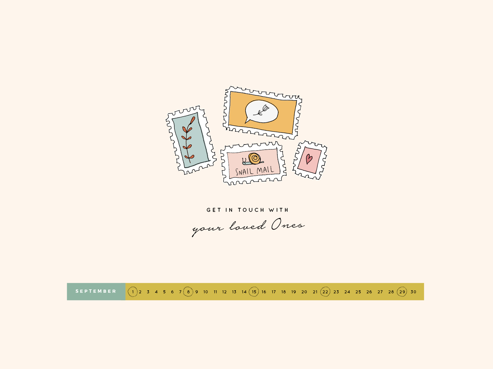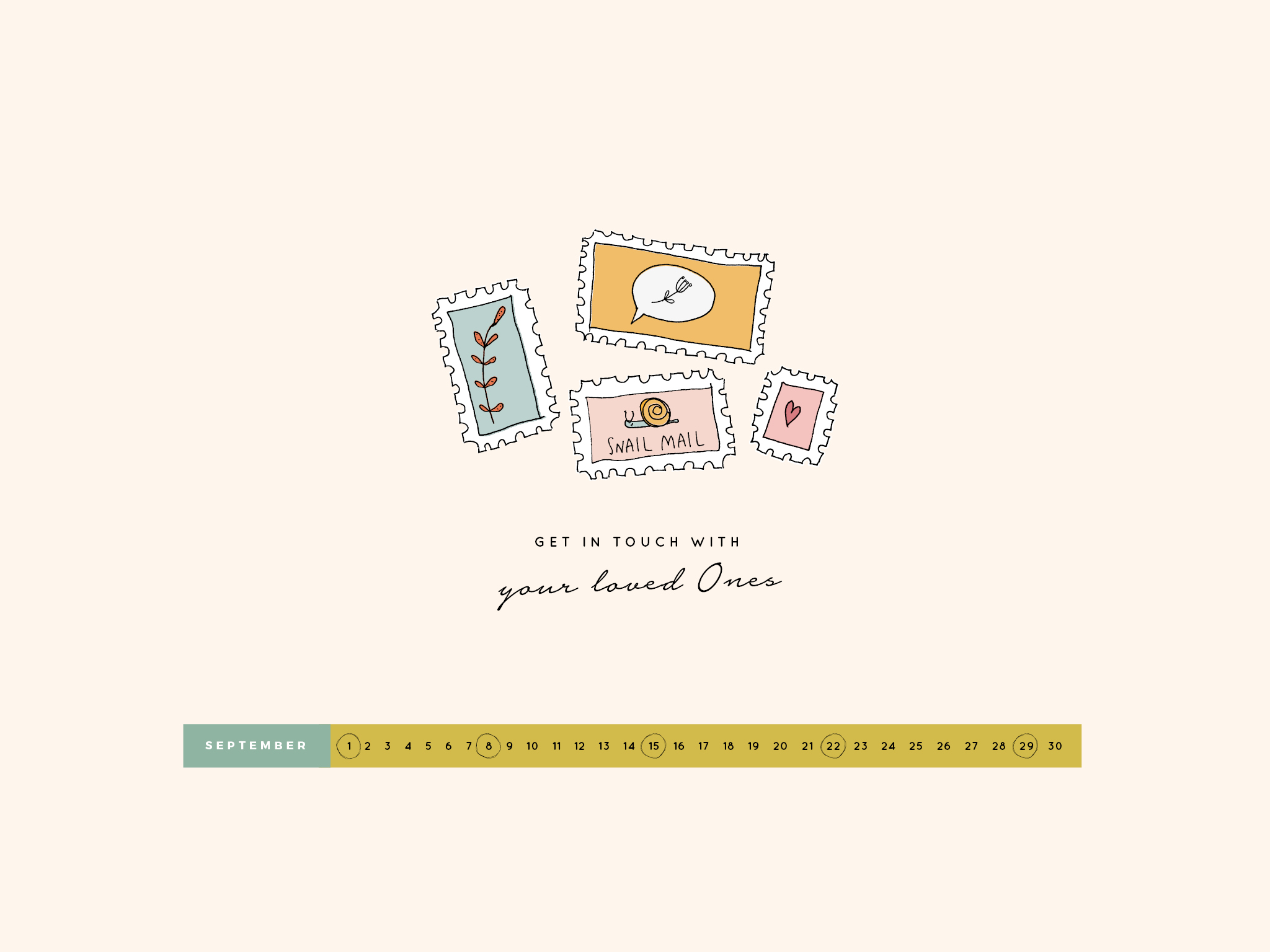 Und für mich dieses Jahr ganz wichtig: Ich nutze die Jahreszeit, um mal wieder Briefe, Postkarten oder manchmal auch einfach SMS zu schreiben. Eine klassische Weihnachtspost kriege ich einfach nicht auf die Kette und auch im neuen Jahr ist immer alles pickepacke voll. Daher habe ich den Herbst jetzt zu meiner persönlichen „Kontaktpflege-Jahreszeit“ ernannt. Wenn du mitmachen möchtest, dann ist mein September-Wallpaper schonmal goldrichtig. Eine kleiner Erinnerungshilfe, sich mal einfach hinzusetzen und einen Brief zu schreiben. Oder (wenn du es lieber kürzer magst) eine Postkarte.