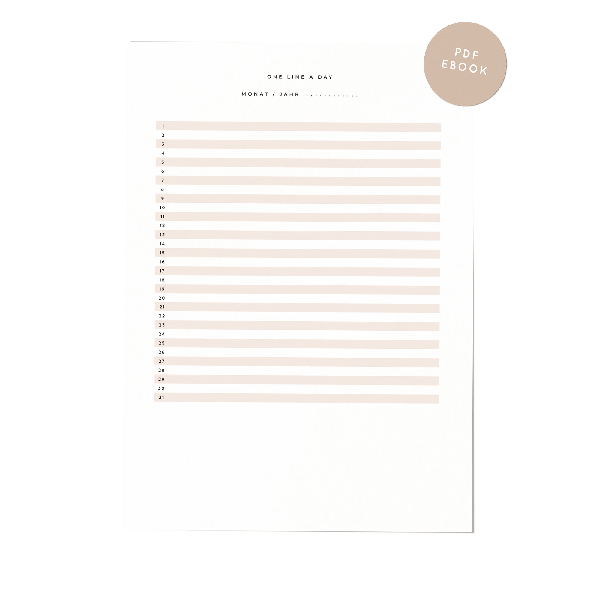 Für alle, die zum Sich-Erinnern nur ein paar Schlagworte brauchen oder für die ein „echtes“ Tagebuch zuviel Zeit kostet: Meine „One Line a Day“ Vorlage in unterschiedlichen Versionen zum Selberdrucken. Jeden Tag trägst du einfach nur eine Zeile ein, was passiert ist. Oder du nutzt das Template als Gratitude-Tagebuch und notierst dir, für was du besonders dankbar warst an diesem Tag.