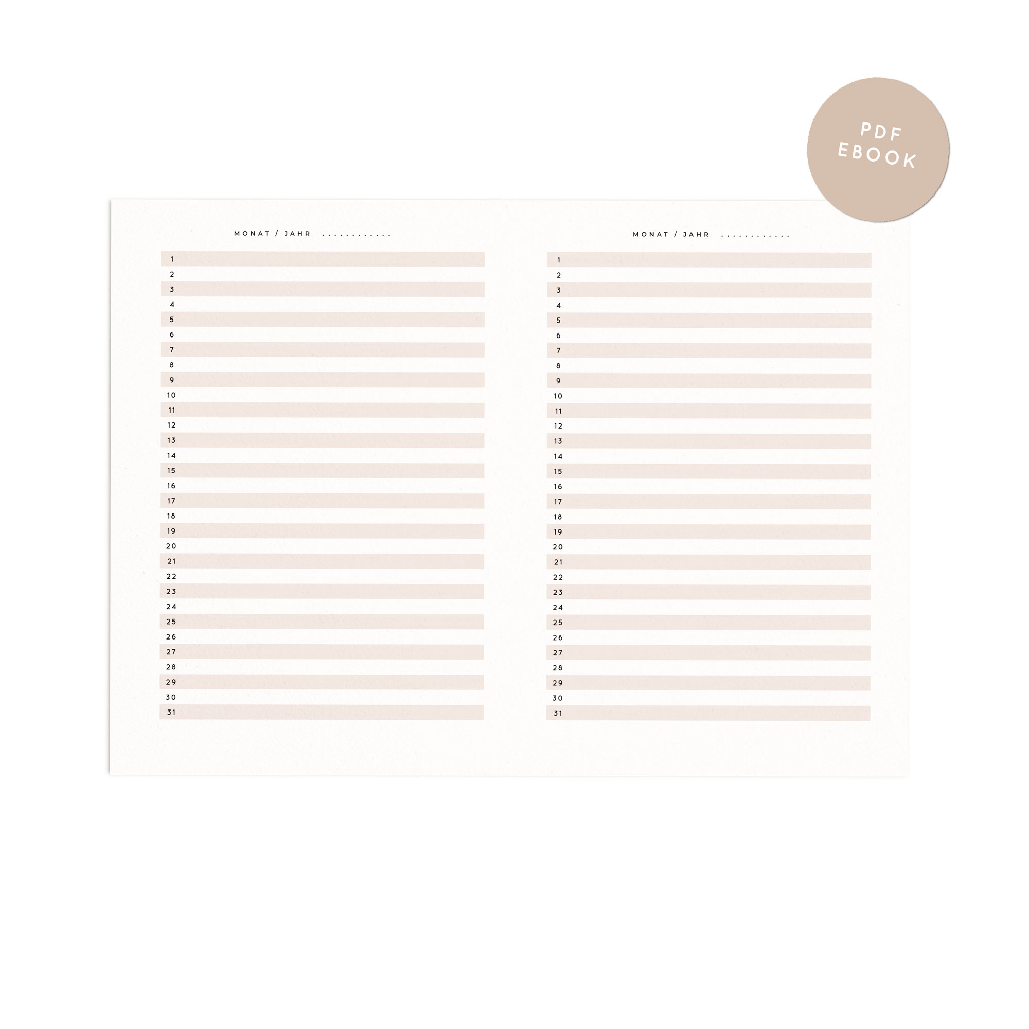 Stelle dir ganz einfach dein ganz persönliches Tagebuch zusammen oder kombiniere diese Vorlage mit meinen anderen Ebooks für eine tolle Jahres-Übersicht.