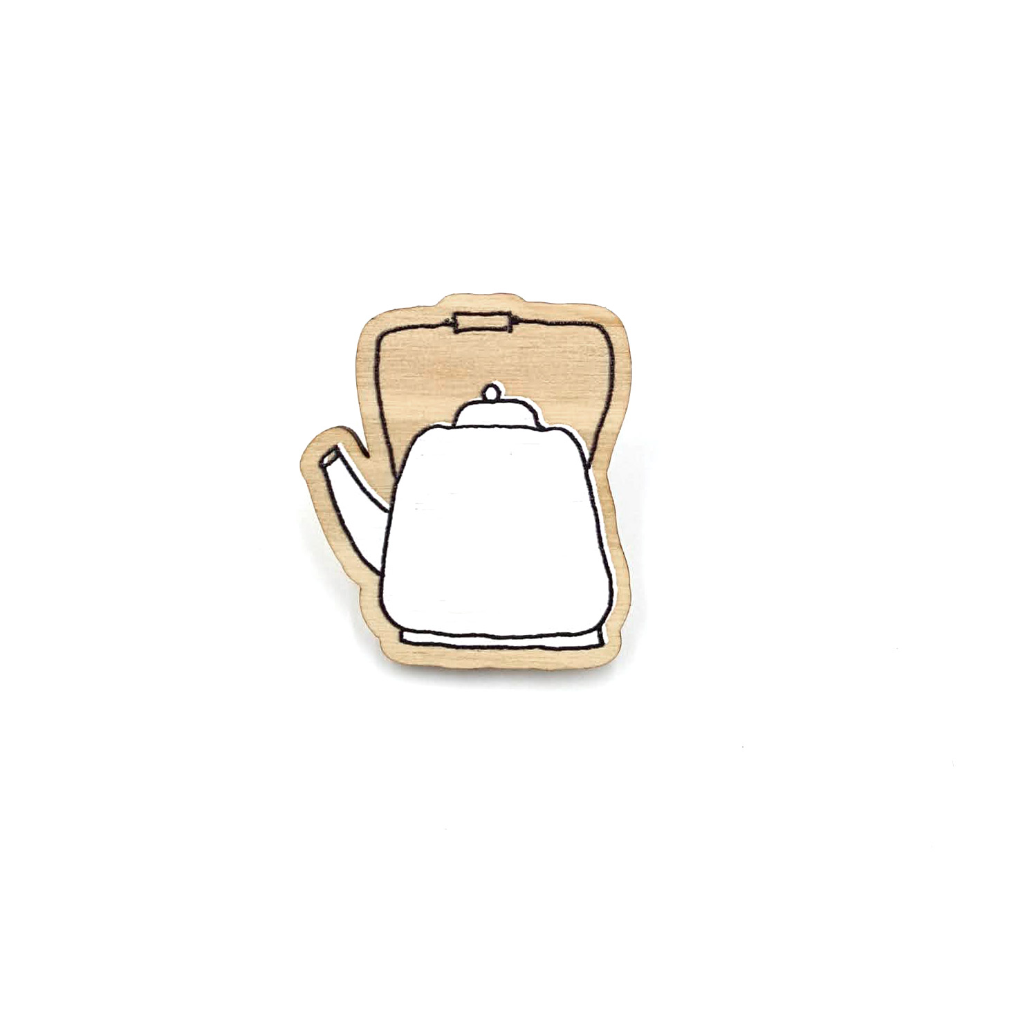 Draußen nur (mit) Kännchen: Ein wunderbarer kleiner Blickfang für Jacke, Tasche oder Shirt – und natürlich auch ein tolles Geschenk für andere. Meine kleine Teekanne gibt es jetzt auch als sommerlichen Holz Pin aus FSC-zertifiziertem Birkenholz. Dabei wird das Holz mit (leicht glänzender) Farbe bedruckt und dann die Form herausgelasert, so dass das Motiv sehr präzise aus dem Holz geschnitten werden kann.