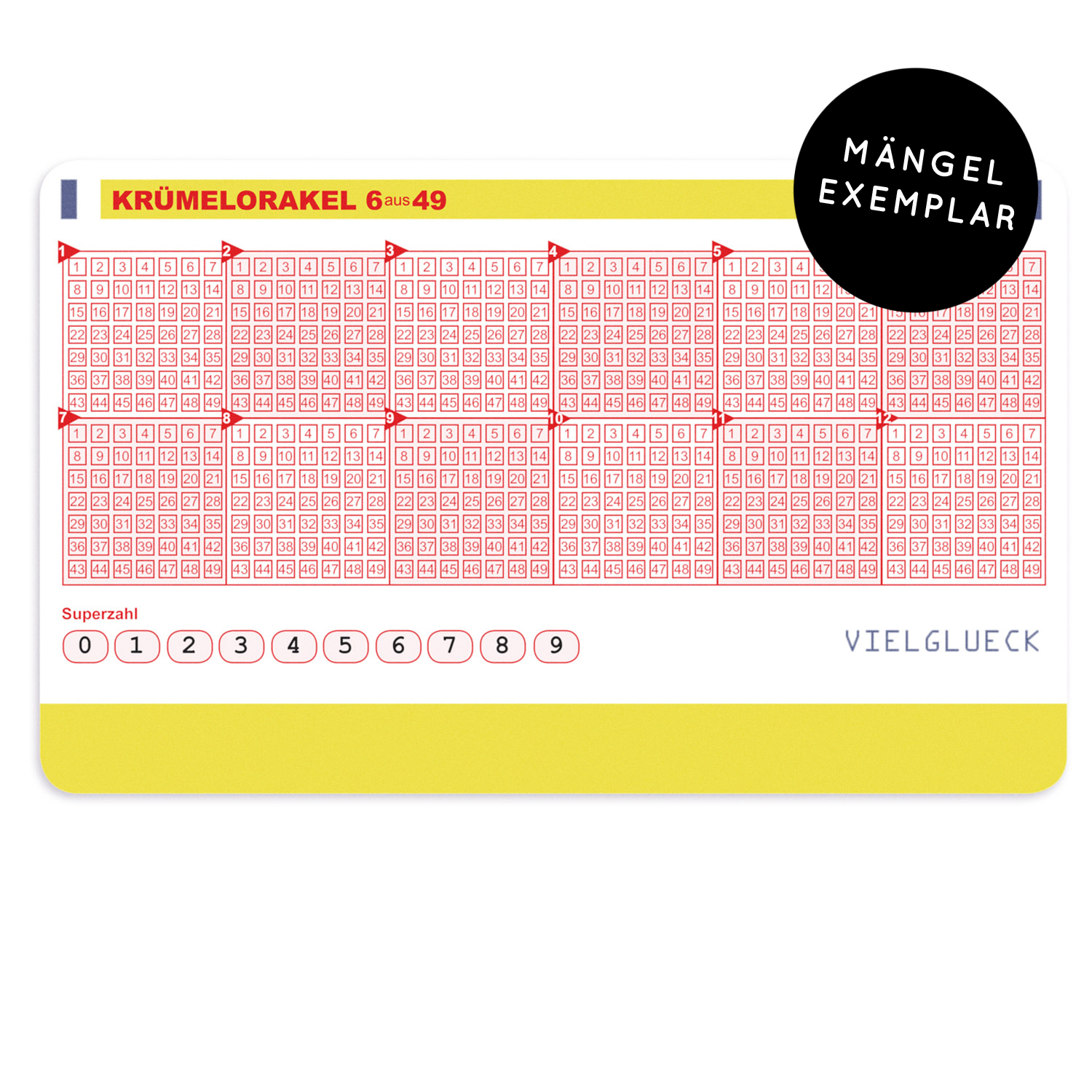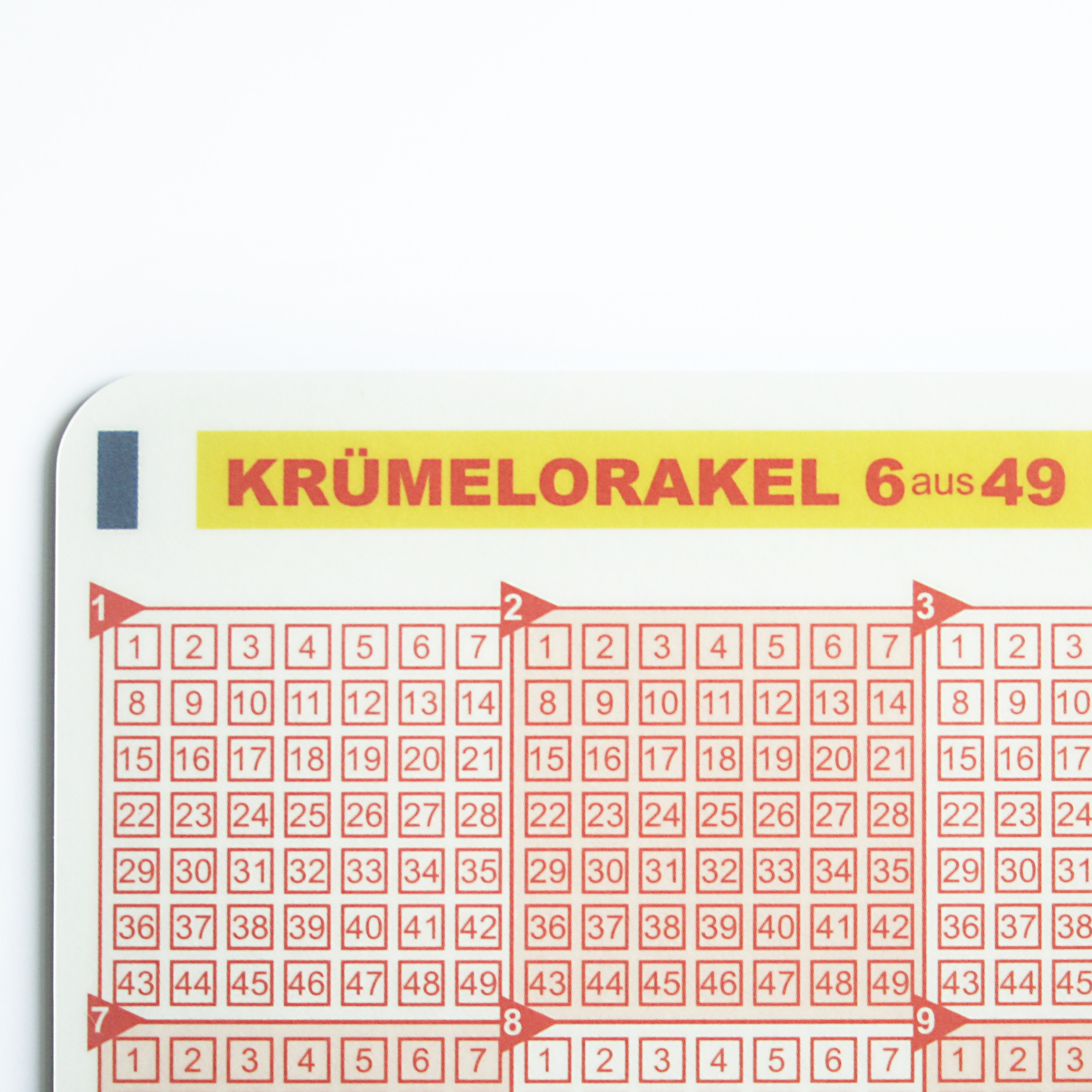 DAS Brettchen für Unentschlossene und Glücksritter, die ihr Schicksal samstags morgens von ihrem Frühstück entscheiden lassen möchten. Das Krümelorakel (235 x 145 mm) in ganz „klassischem“ Look aus hochwertiger Schichtstoffplatte mit Leinenoptik auf der Rückseite. Notiere einfach die Zahlen, auf die deine Krümel gefallen sind und schon fällt die Wahl der Lottozahlen leichter!