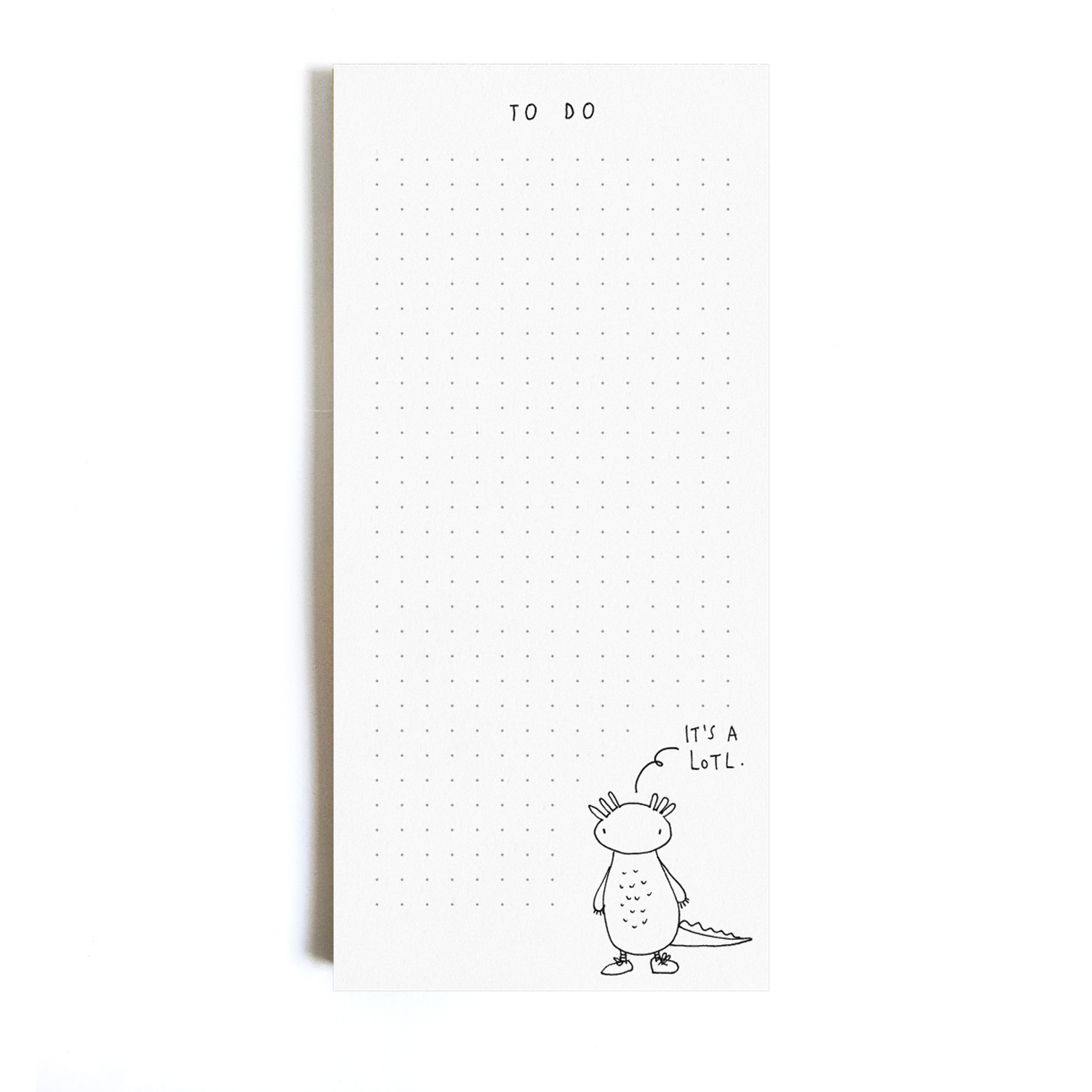 Wunderhübscher Notizblock mit meiner Axl-das-Axolotl-Skizze im Format 9.8 x 21cm. Mit 50 einseitig bedruckten und am Kopf geleimten Seiten. Perfekt für alle, die ihre Listen noch gern mit Stift auf Papier schreiben: Dieser Block macht alles mit.