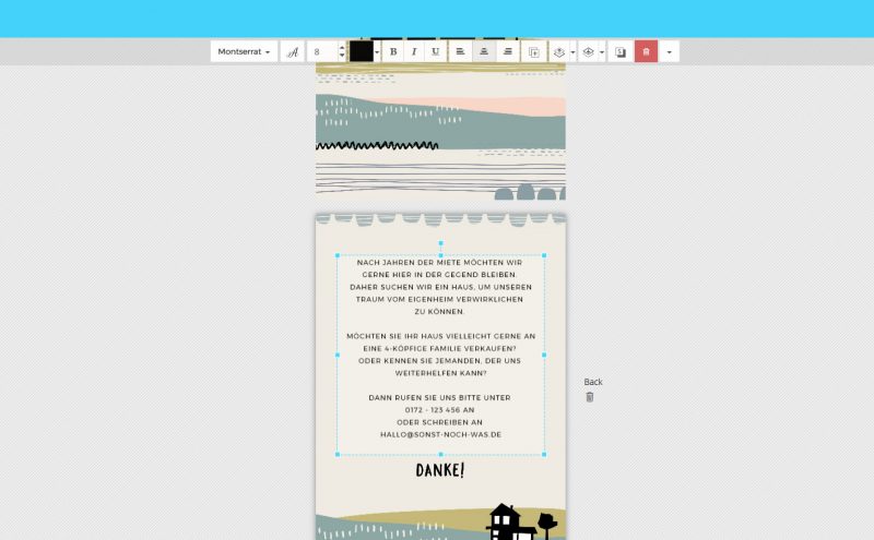 Ich layoute für euch die Rückseite mit eurem individuellen Text und schicke Euch das Ergebnis als digitale Vorschau zum „absegnen“. Falls ihr noch Änderungswünsche habt ist das gar kein Problem. Erst nach eurem „Okay“ geht das Kärtchen in den Druck. Und natürlich wird nichts gedruckt, bevor ihr damit nicht 100%ig zufrieden seid.