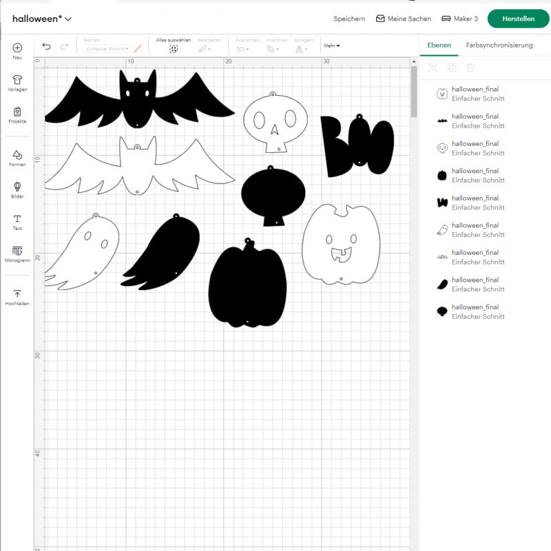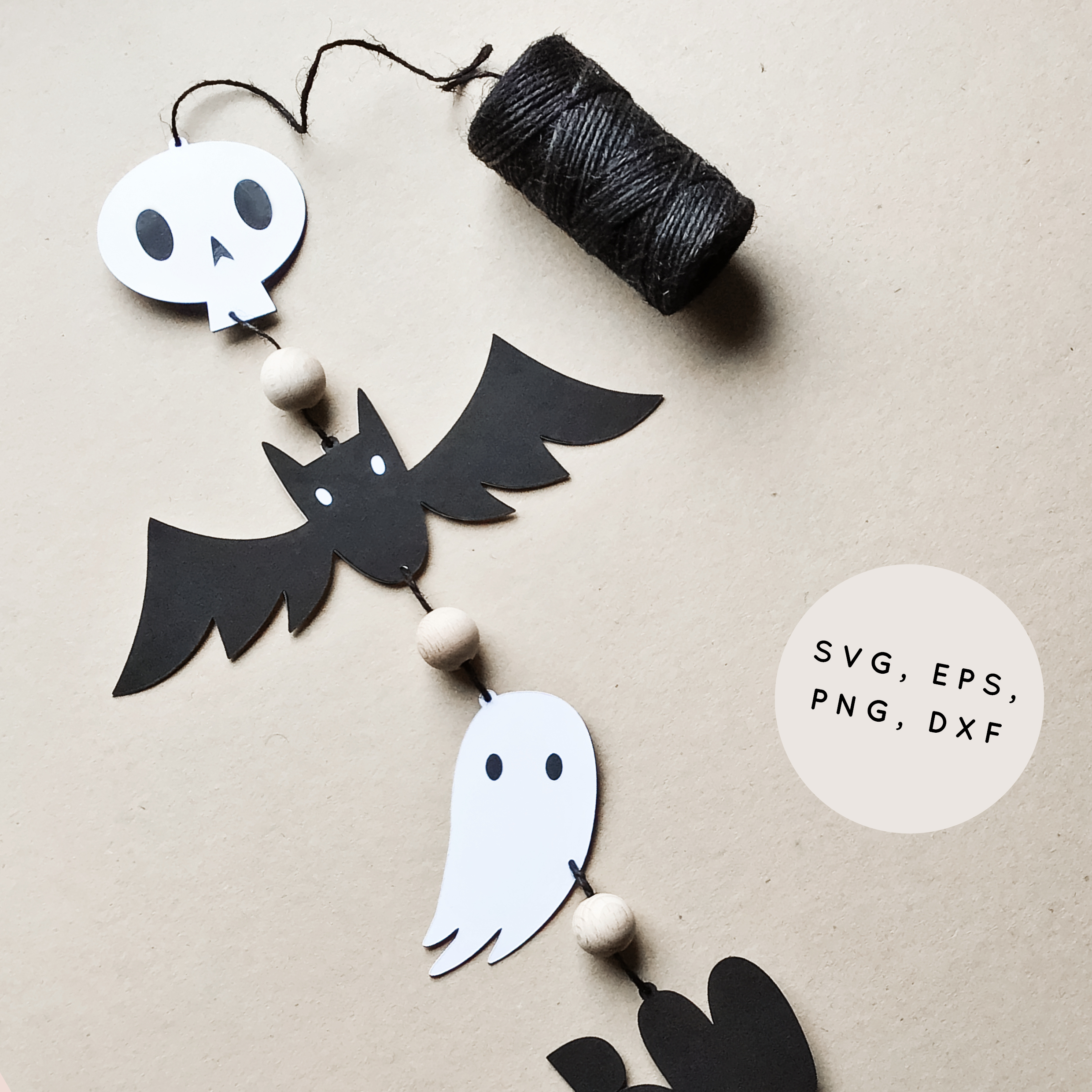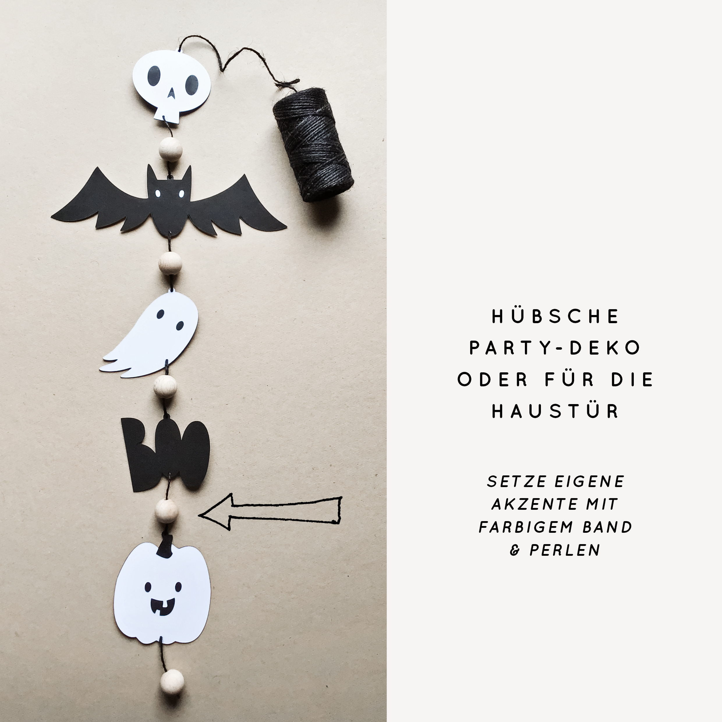 Boo! Es ist Zeit für die Halloween-Deko, aber du hast noch keine eingekauft? Mit etwas Papier und deinem Schneidplotter kannst du ganz einfach diese Anhänger basteln und sie auffädeln. Perfekt, um deiner Party den letzten Schliff zu geben oder deine Haustür für Trick or Treat Kinder zu schmücken.