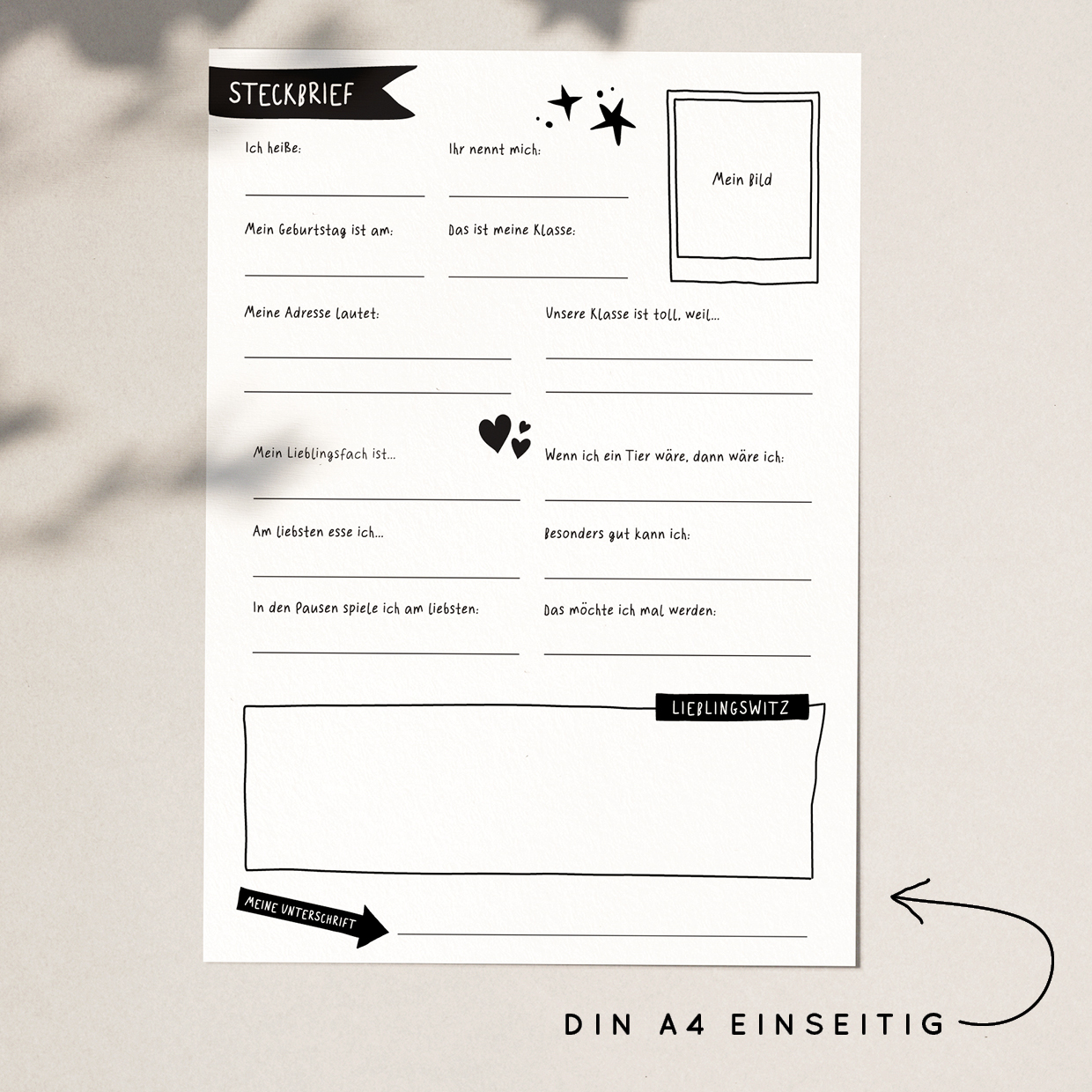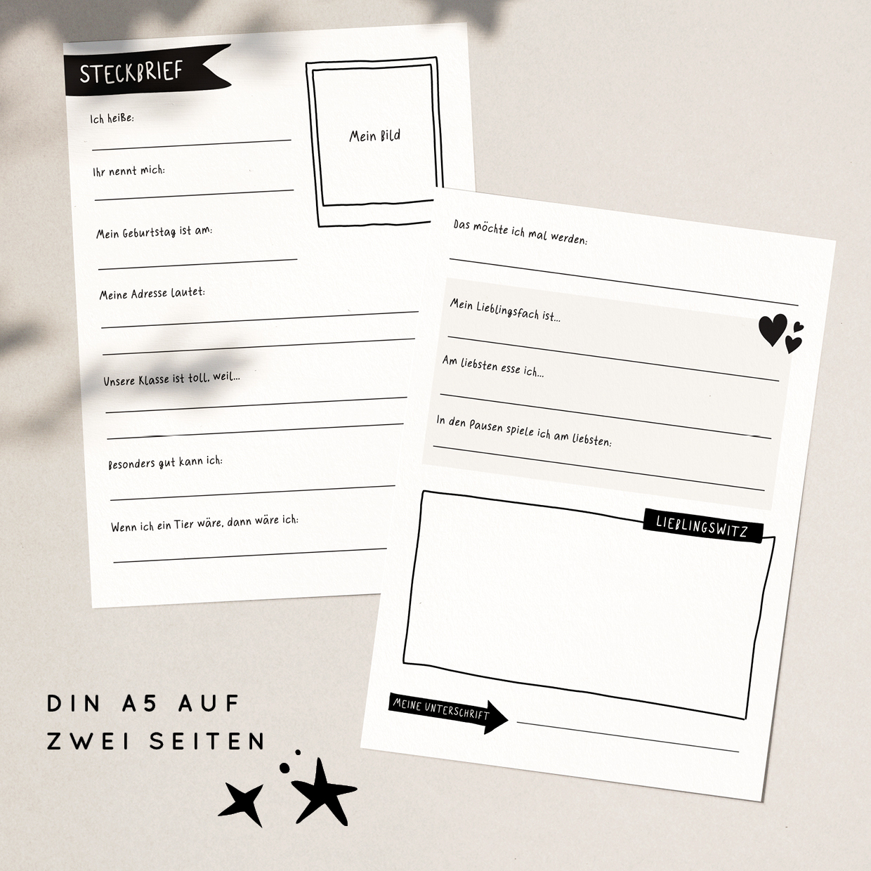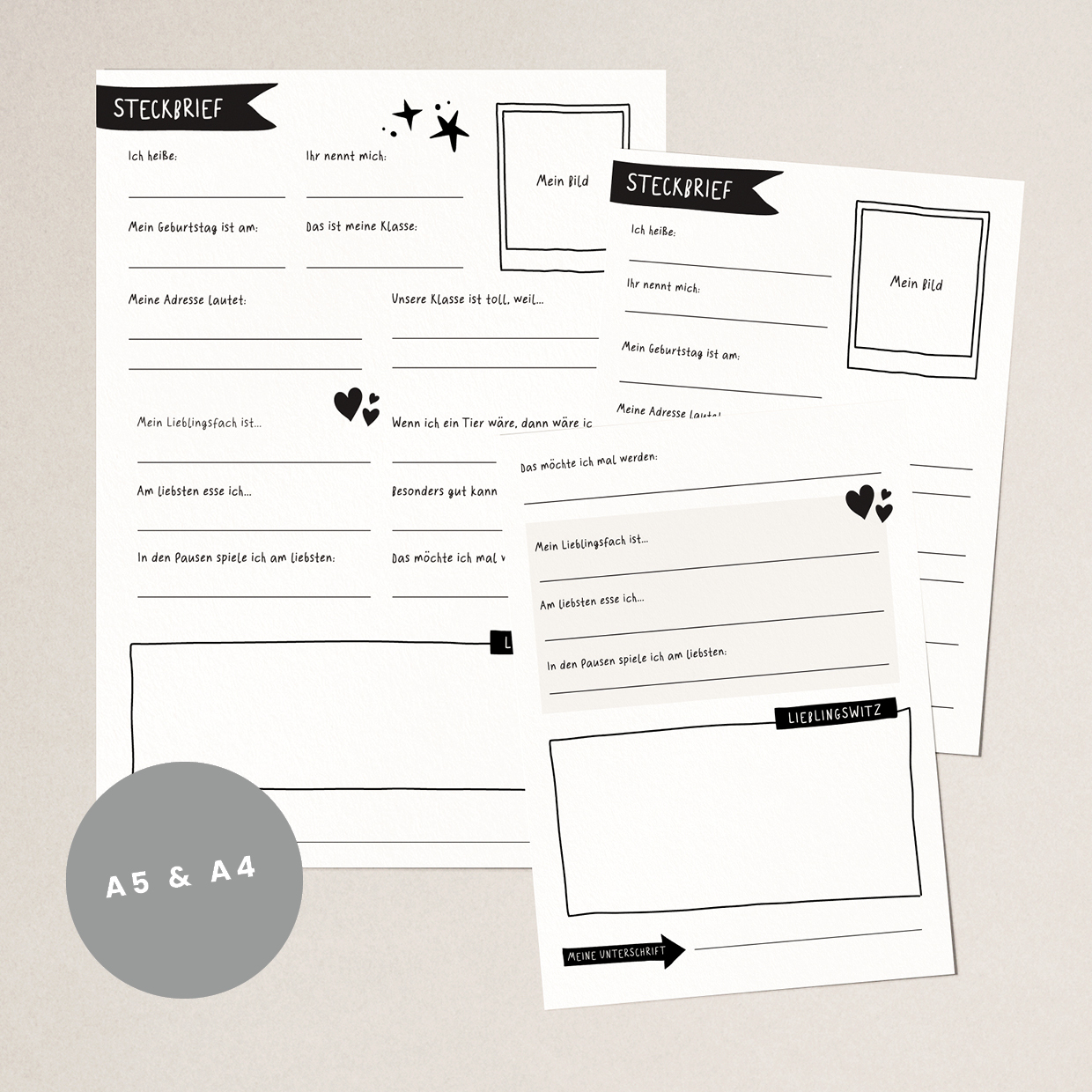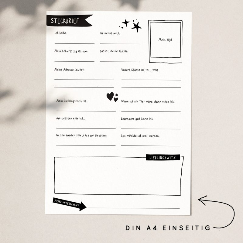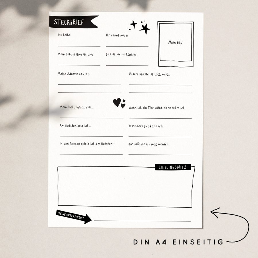 Steckbrief A4 & A5 für Klassenzeitung oder Freundebuch