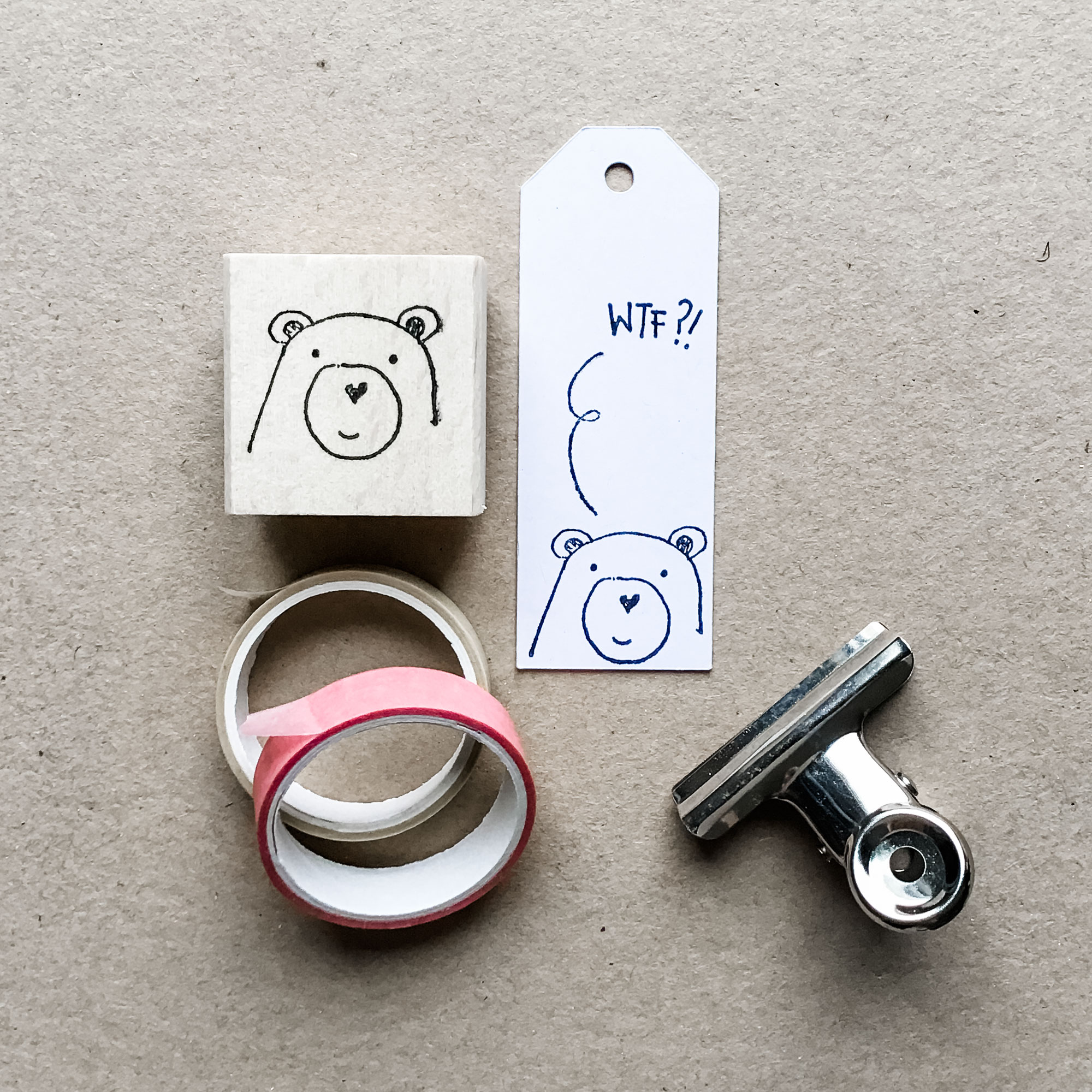 Oh, hallo! Mein kleiner Bär ist jetzt auch als Stempelchen erhätlich und kann überall für ein bisschen gute Laune sorgen. Super für Geschenkanhänger oder für Karten. Auch prima mit Sprechschlenker, Sprechblase und Herzchen- oder Textstempeln zu kombinieren. So kannst du mit ganz einfachen Mitteln Tischkarten stempeln oder deinen Grußkarten den letzten Schliff geben.