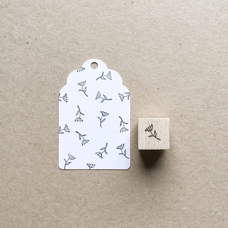 Das 16x19mm große Stempelgummi ist auf einem griffigen Buchenholz-Block montiert. Zwischen Stempelgummi und Holz befindet sich eine federne Moosgummischicht. Dadurch lässt sich der Stempel besser drucken. Die Ranke ist zur besseren Orientierung noch einmal aufgestempelt.