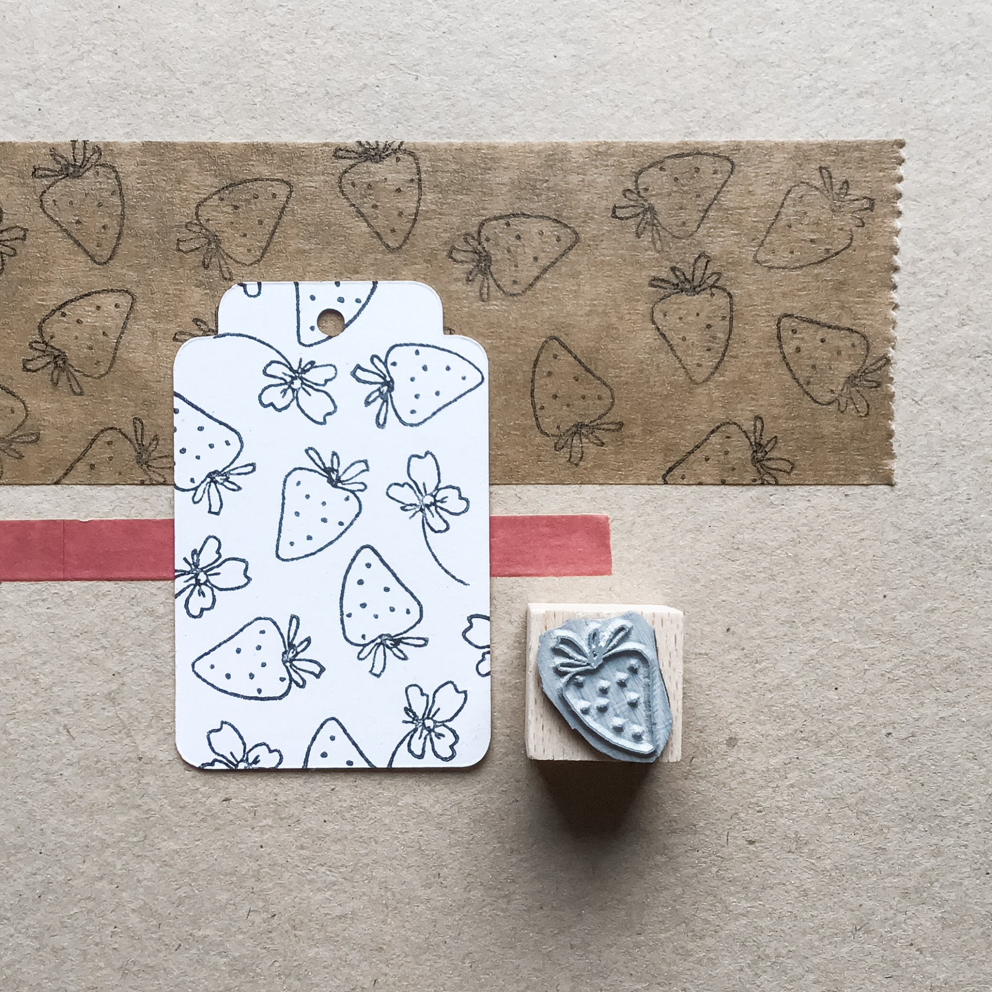 Meine liebste Jahreszeit? Frühling! Und am allerbesten: Spragel- und Erdbeerzeit. Daher muss es natürlich auch kleine Erdbeeren zum Stempeln in meinem Sortiment geben. :) Mit diesem hier lassen sich nicht nur witzige Muster auf Geschenkanhänger, Karten oder Briefpapier stempeln, sondern auch Geschenkpapier und vieles mehr.
