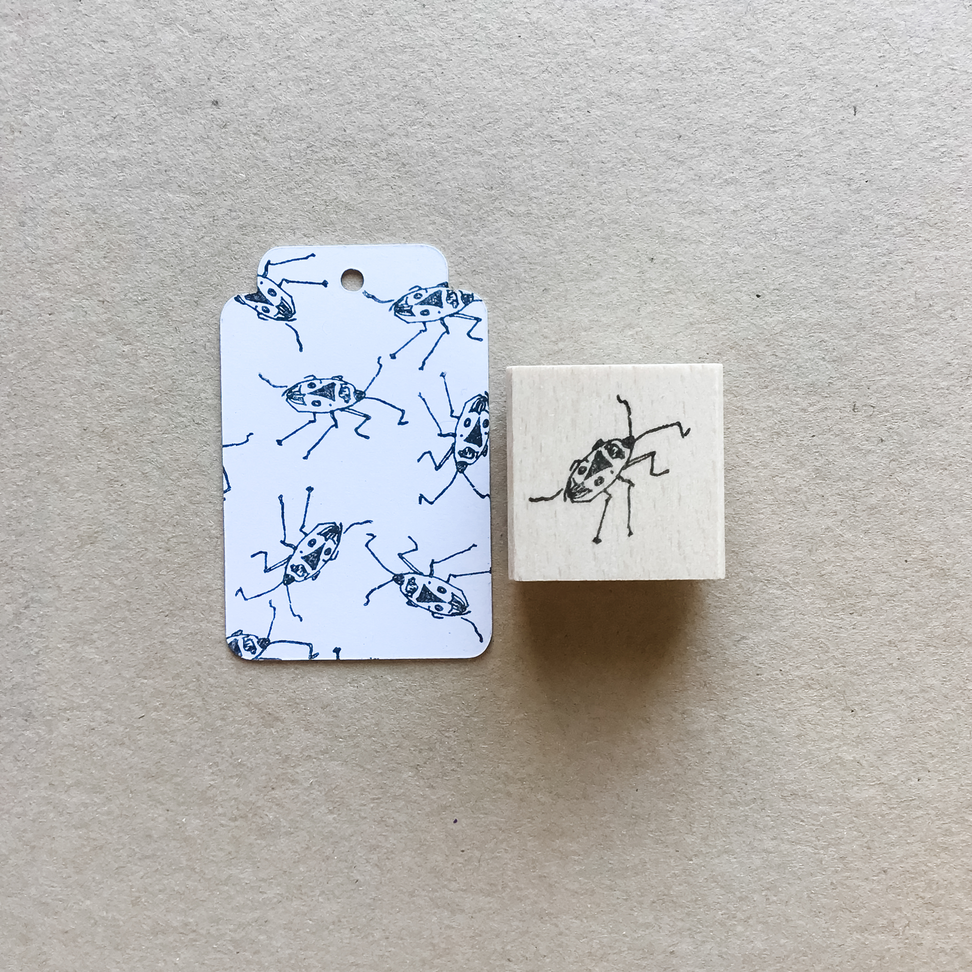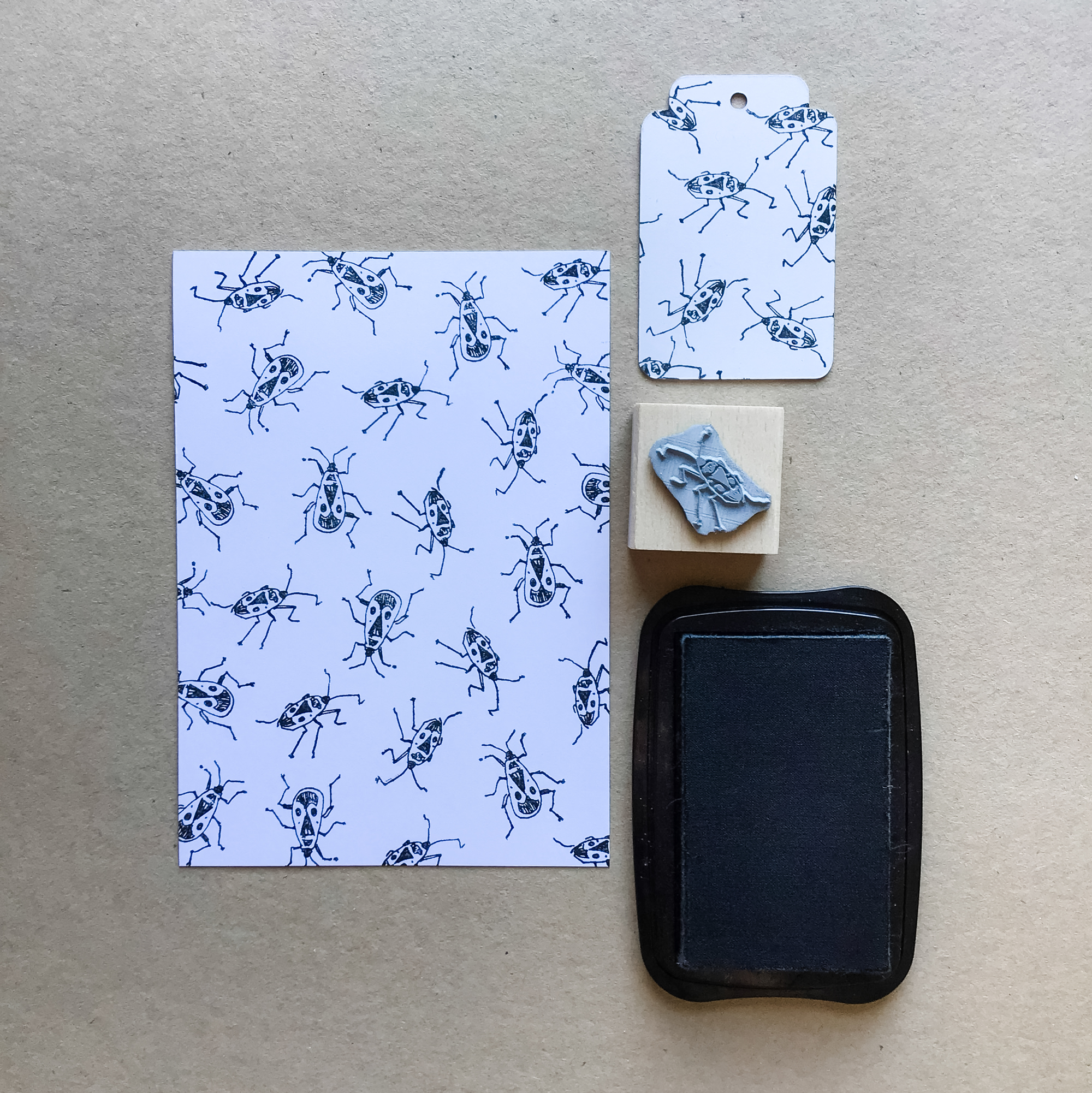 Das Motiv lässt sich ganz schlicht in schwarz-weiss bzw. einfarbig stempeln. Du kannst sie aber auch (mit der entsprechenden Stempelfarbe) prima zum Stempeln von Mustern zum Ausmalen mit Buntstift oder Wasserfarbe benutzen. Dazu passt natürlich auch die zweite kleine Feuerwanze in meinem Sortiment, damit das Muster etwas abwechslungsreicher wird.