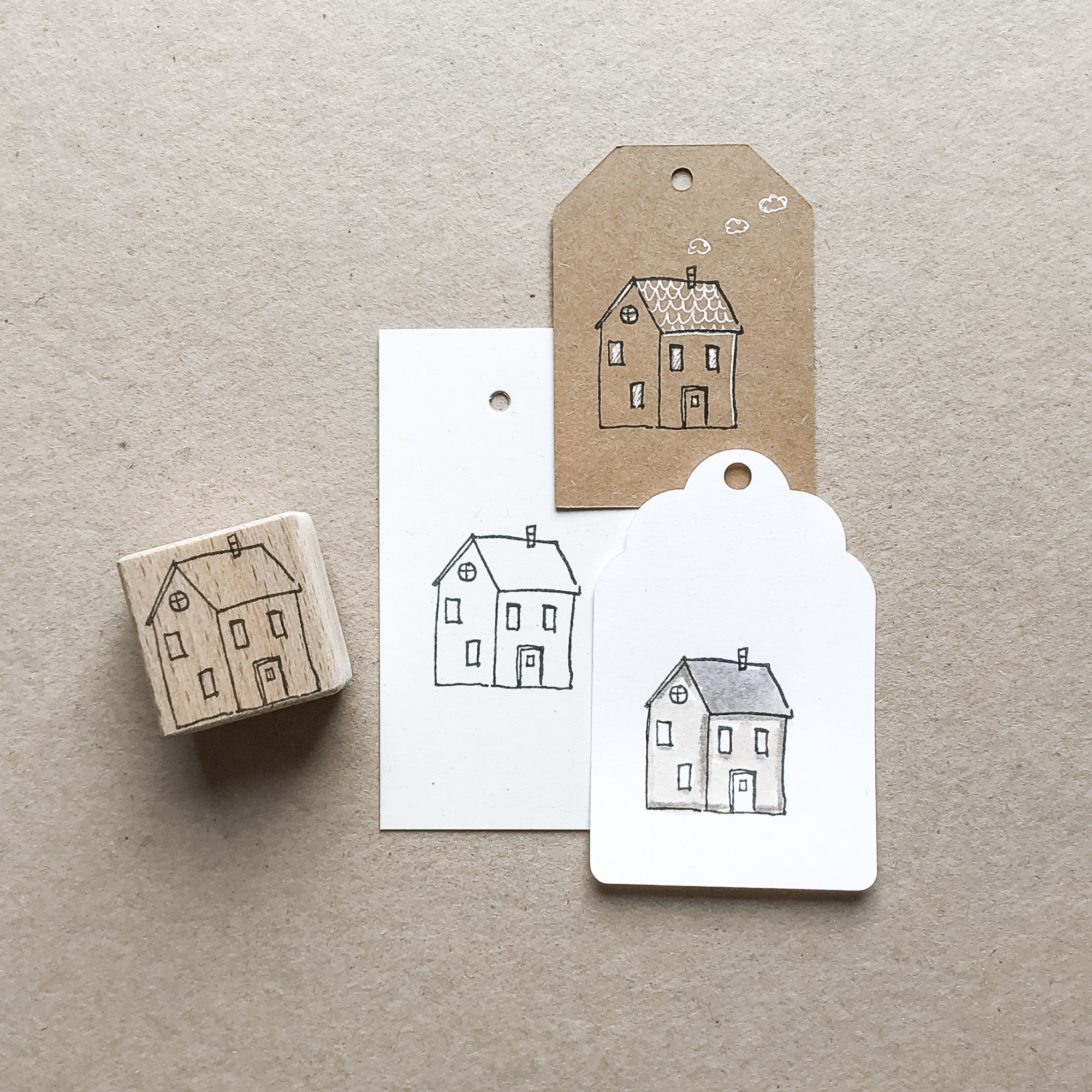 Das Motiv lässt sich ganz schlicht in schwarz-weiss bzw. einfarbig stempeln. Du kannst es aber auch als “Malvorlage” stempeln (am besten mit einem wasserfesten Stempelkissen) und dann nach Herzenslust ausmalen. Wenn du es auf dunklem Papier stempelst kannst du auch noch toll Akzente mit einem weißen Stift setzen. Und es lässt sich wunderbar mit meinen anderen Haus-Stempeln kombinieren.