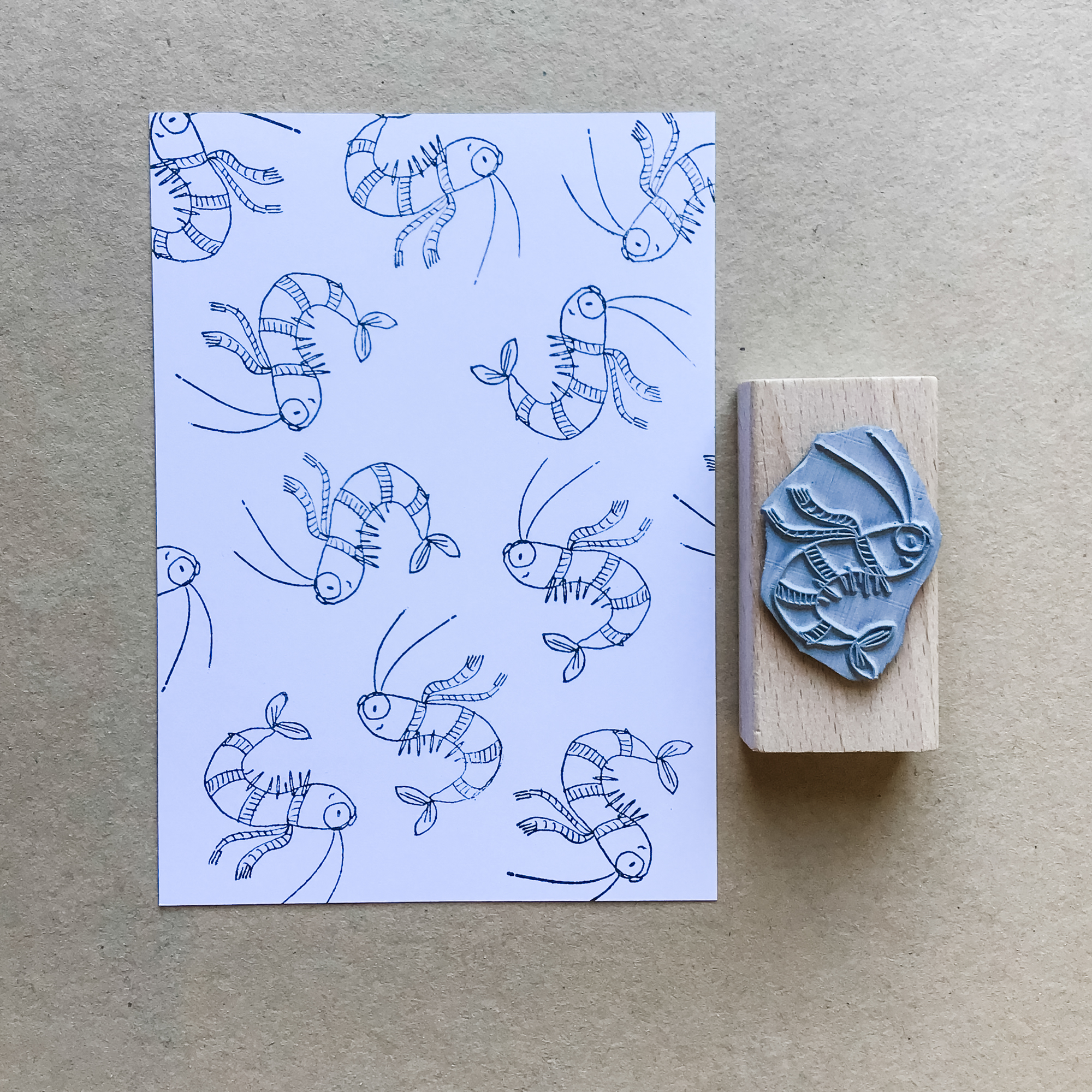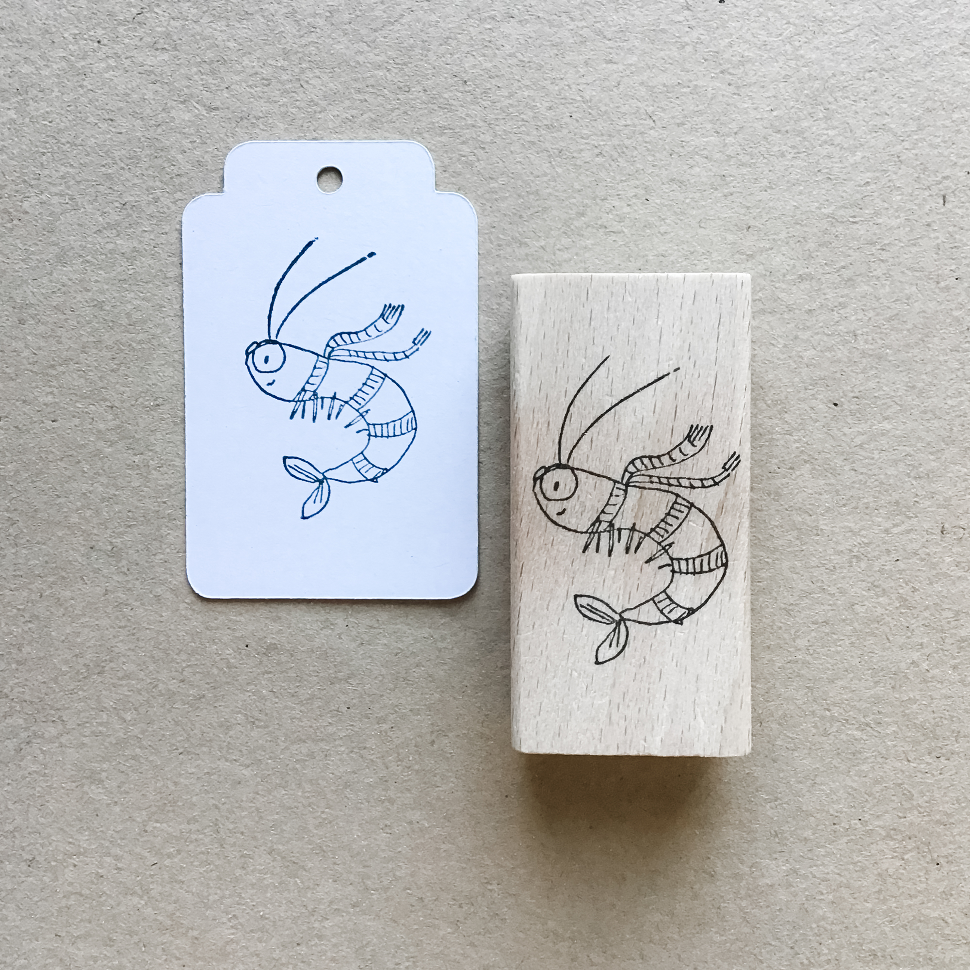 Perfekt für Geschenkanhänger, Kärtchen oder einfach als Verzierung auf Briefen und Päckchen: Kyrill, der Krill als Stempel.