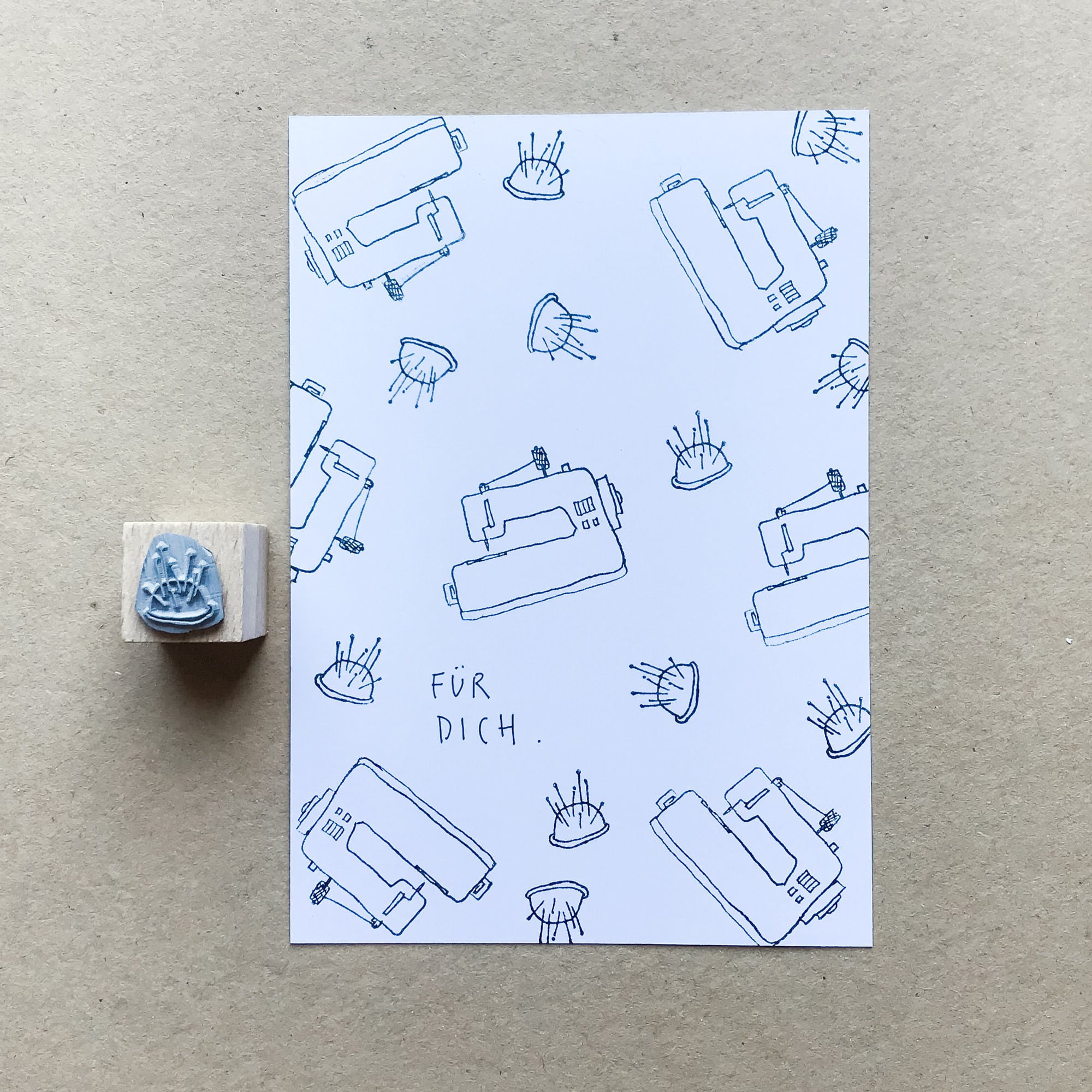 Das Motiv lässt sich übrigens ganz toll mit meinem Nähmaschinen-Stempel kombinieren (siehe Foto).