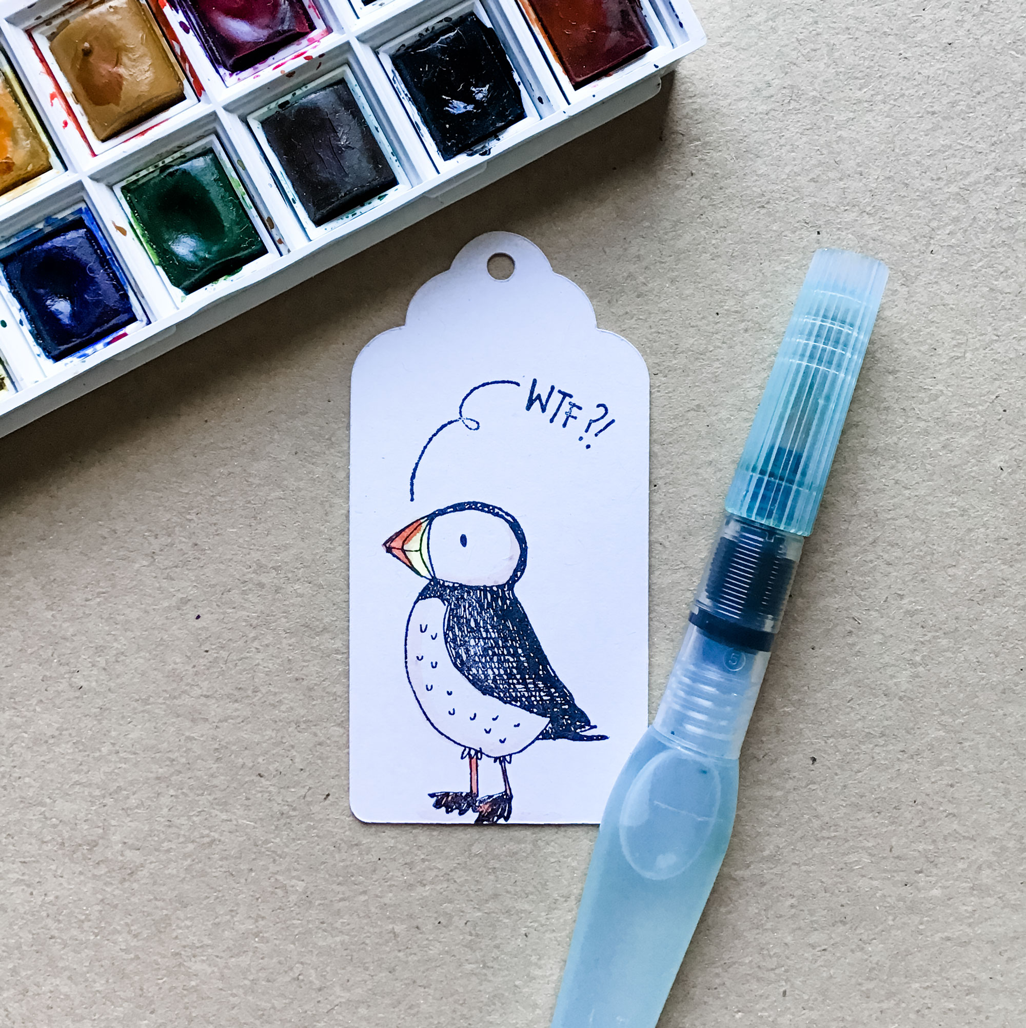 Perfekt für Geschenkanhänger, Kärtchen oder einfach als Verzierung auf Briefen und Päckchen: Mein handgezeichneter Papageientaucher als Stempel.