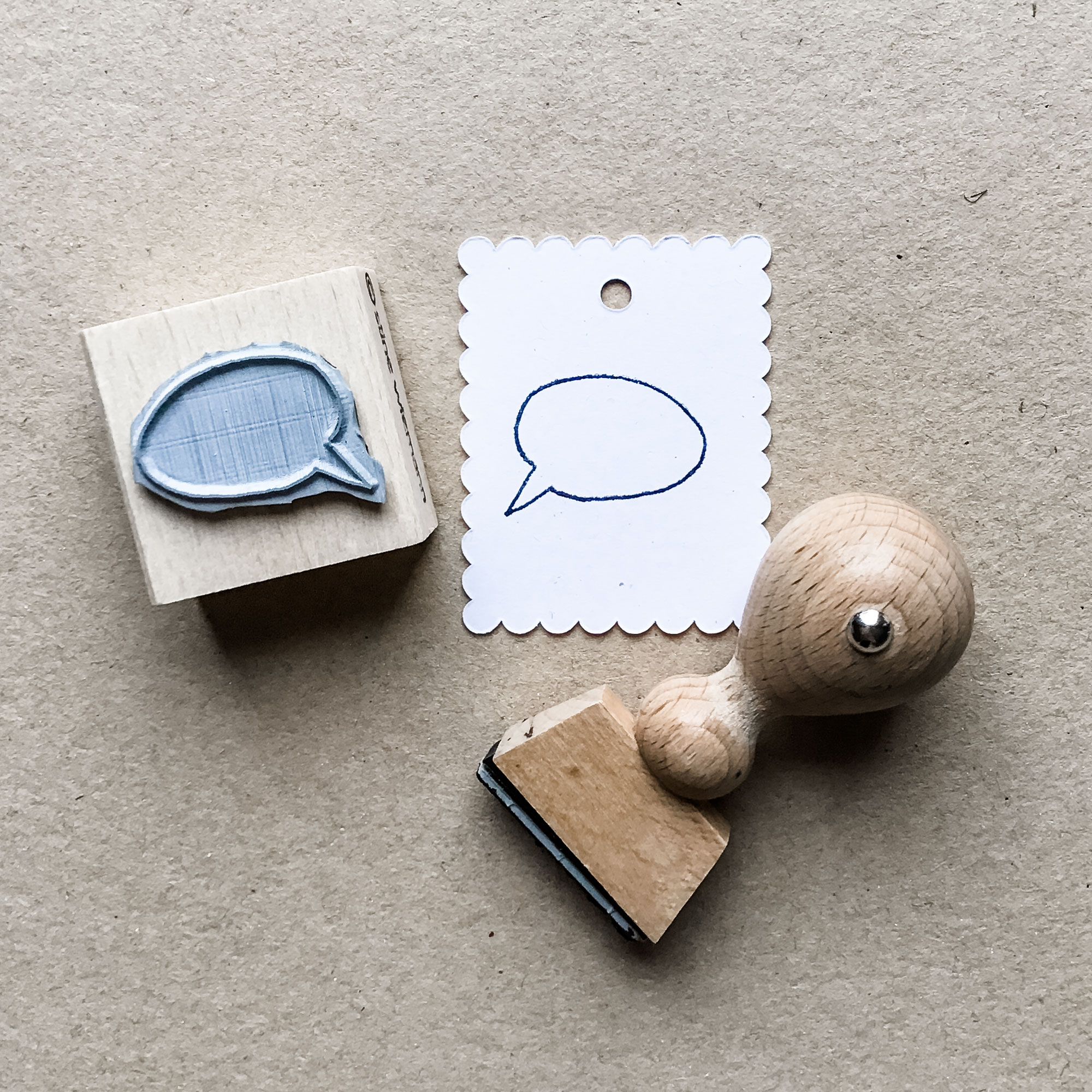 Eine super Ergänzung für deine Stempelsammlung: Meine handgezeichnete kleine Sprechblase. Super für Geschenkanhänger oder für Karten – insbesondere auch als Ergänzung zu meinen kleinen Tier-Stempeln, die jetzt mit der Sprechblase quasi „sprechen lernen“. :)