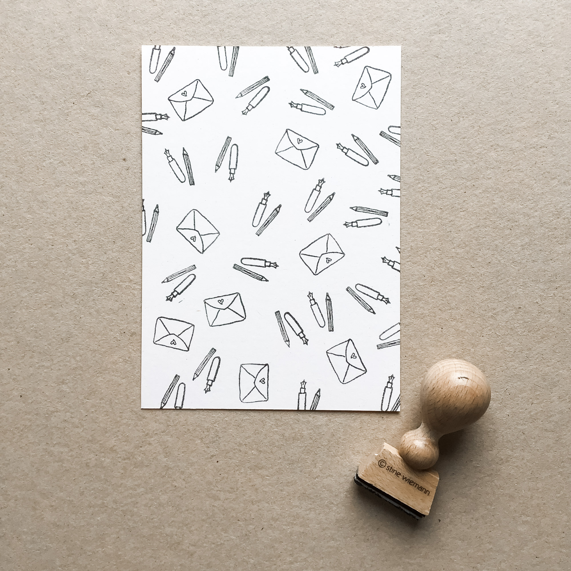 Das Motiv lässt sich ganz schlicht in schwarz-weiss bzw. einfarbig stempeln. Du kannst sie auch noch mit einem farbigen Stift ausmalen. Außerdem lässt sich der Stempel prima mit anderen kombinieren – zum Beispiel mit meinen Briefstempeln (siehe Foto). :)
