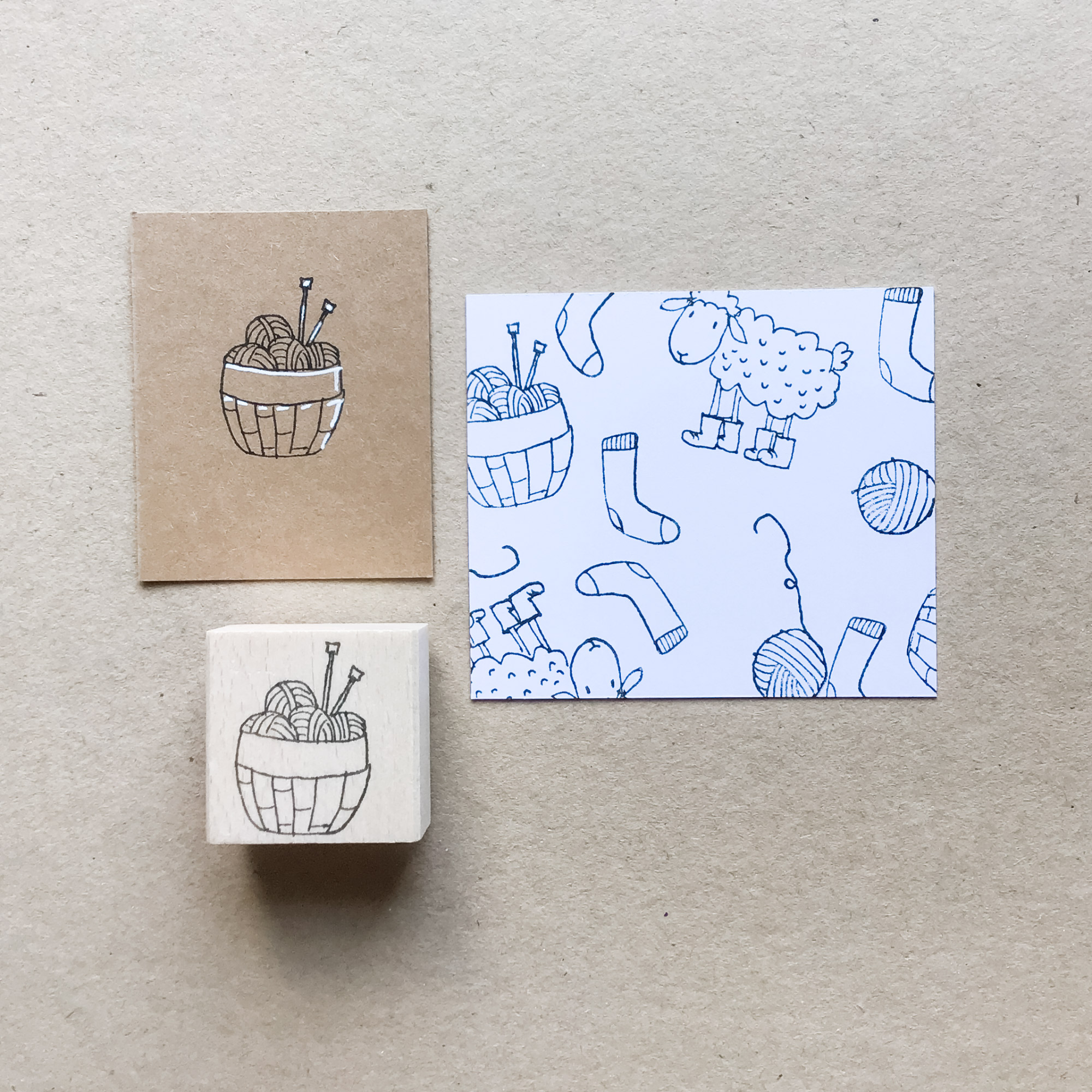Das Motiv lässt sich ganz schlicht in schwarz-weiss bzw. einfarbig stempeln. Du kannst es aber auch als “Malvorlage” stempeln (am besten mit einem wasserfesten Stempelkissen) und dann nach Herzenslust ausmalen. Dazu passen zum Beispiel das Wollknäuel, das kleine Schaf oder die Socke aus meinem Sortiment.