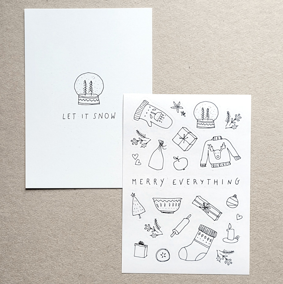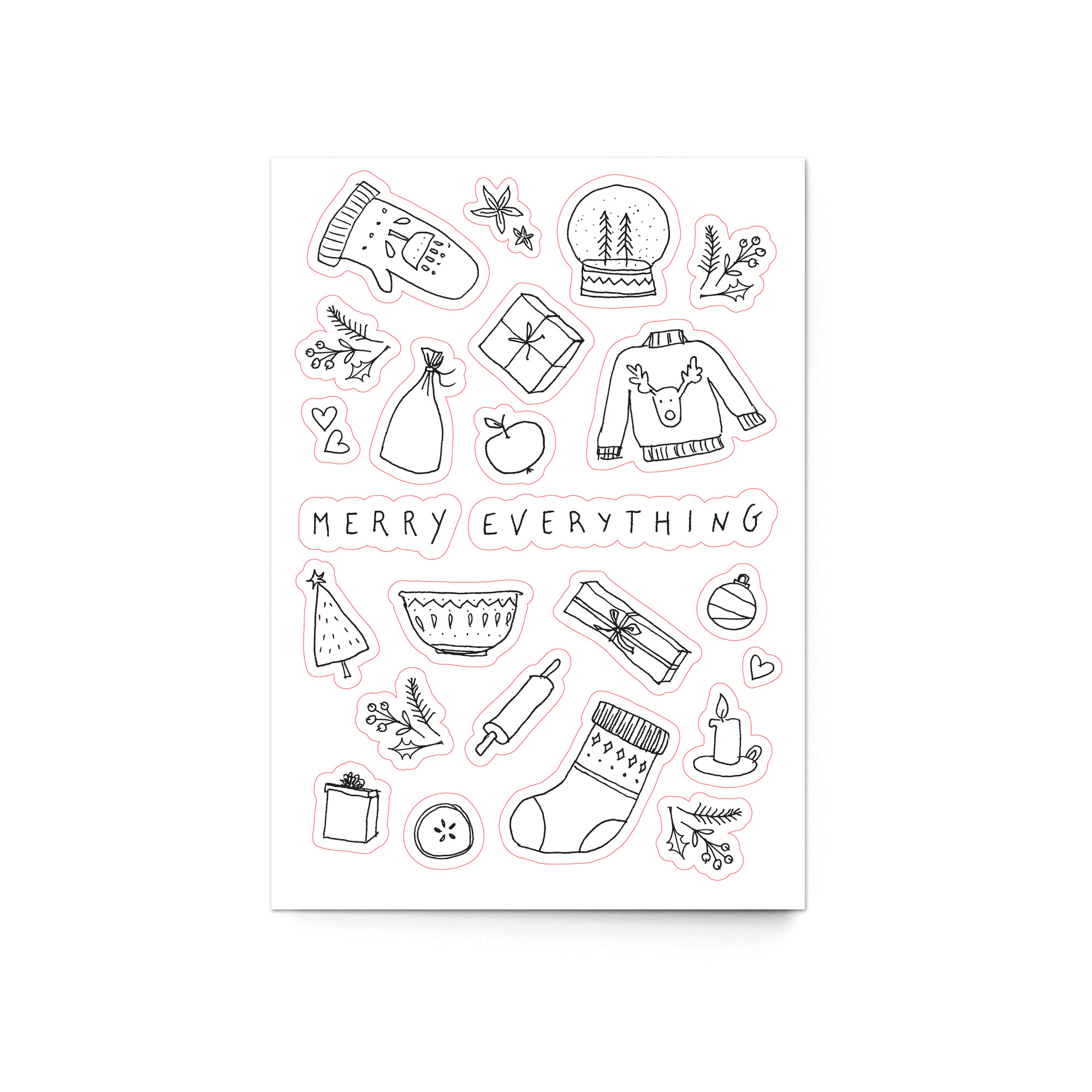 Winter is coming! Oder schon da. Oder noch weit weg. Egal! Hier kommen 24 kleine Sticker zum Thema „Weihnachten“ auf einem A6 Bogen – perfekt zum Verschenken (z.B. im Adventskalender), aber auch ganz toll zum Selber-Benutzen.
