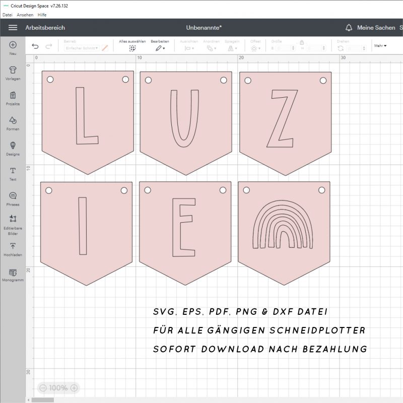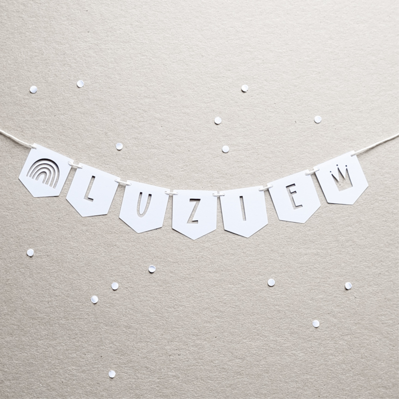 Ob als große Girlande für die Partydeko, als Namensgirlande für das Kinderzimmer oder in der Mini-Version für Caketopper: Diese Girlande ist ein absoluter Tausendsassa!