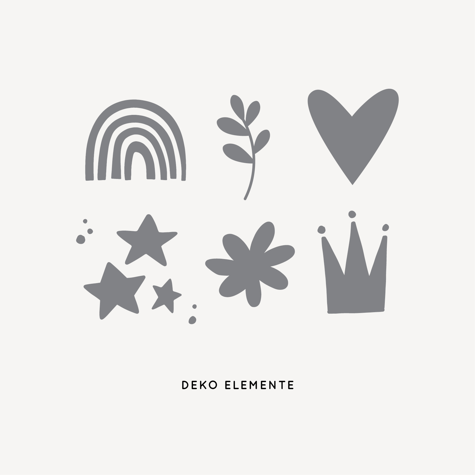 – verschiedene Deko-Elemente wie Regenbogen, Krone, Herz, Sternchen und eine Blumenranke