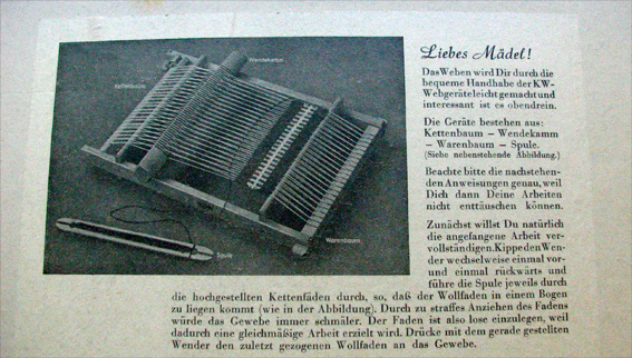 Wo wir gerade beim Weben sind… Ich war den einen Tag in der hiesigen Brocken- stube, da bekommt man alles Mögliche z.B. aus Haushaltsauflösungen oder auch Second-Hand sowie Antiquitäten, sozusagen ein Flohmarkt mit Wänden drumherum. Auf jeden Fall macht es viel Spass dort zu stöbern. Ich fand unter Anderem diesen wundervollen Schulwebrahmen für 5 CHF (3,50 €).